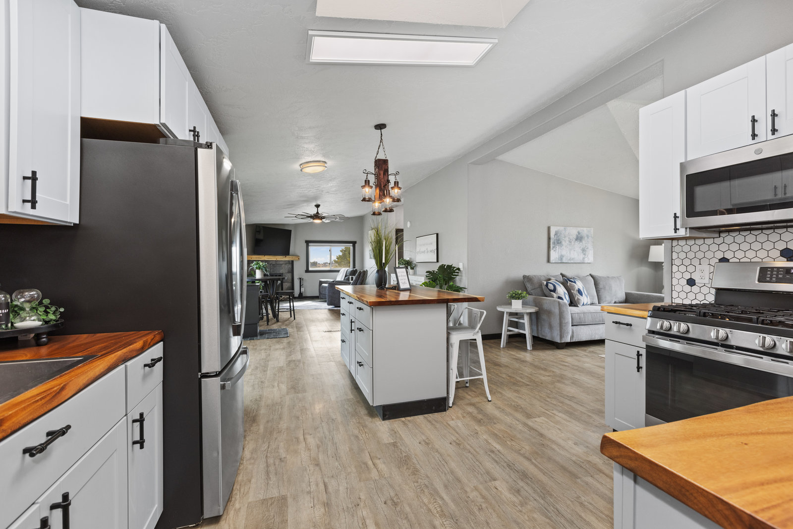Welcome to your fully updated home on the hill! Looking for space and a peaceful property to make your own; look no further. Perched on nearly an acre and a half, this move-in-ready home offers versatility to create your hobby farm or simple oasis away from the city. Every detail throughout the house has been impeccably updated, including a brand new kitchen equipped with a gas range, an island with seating and a sky light that highlights the beautiful Acacia wood countertops. The new Grand Teton pellet stove is the perfect spot to cozy up by all winter long, it even has bluetooth control from anywhere. The master bedroom suite is a private retreat with designer tile walk in shower, corner soaker ...