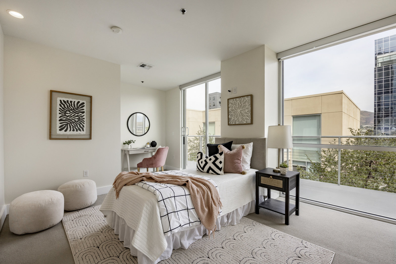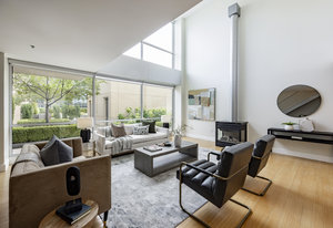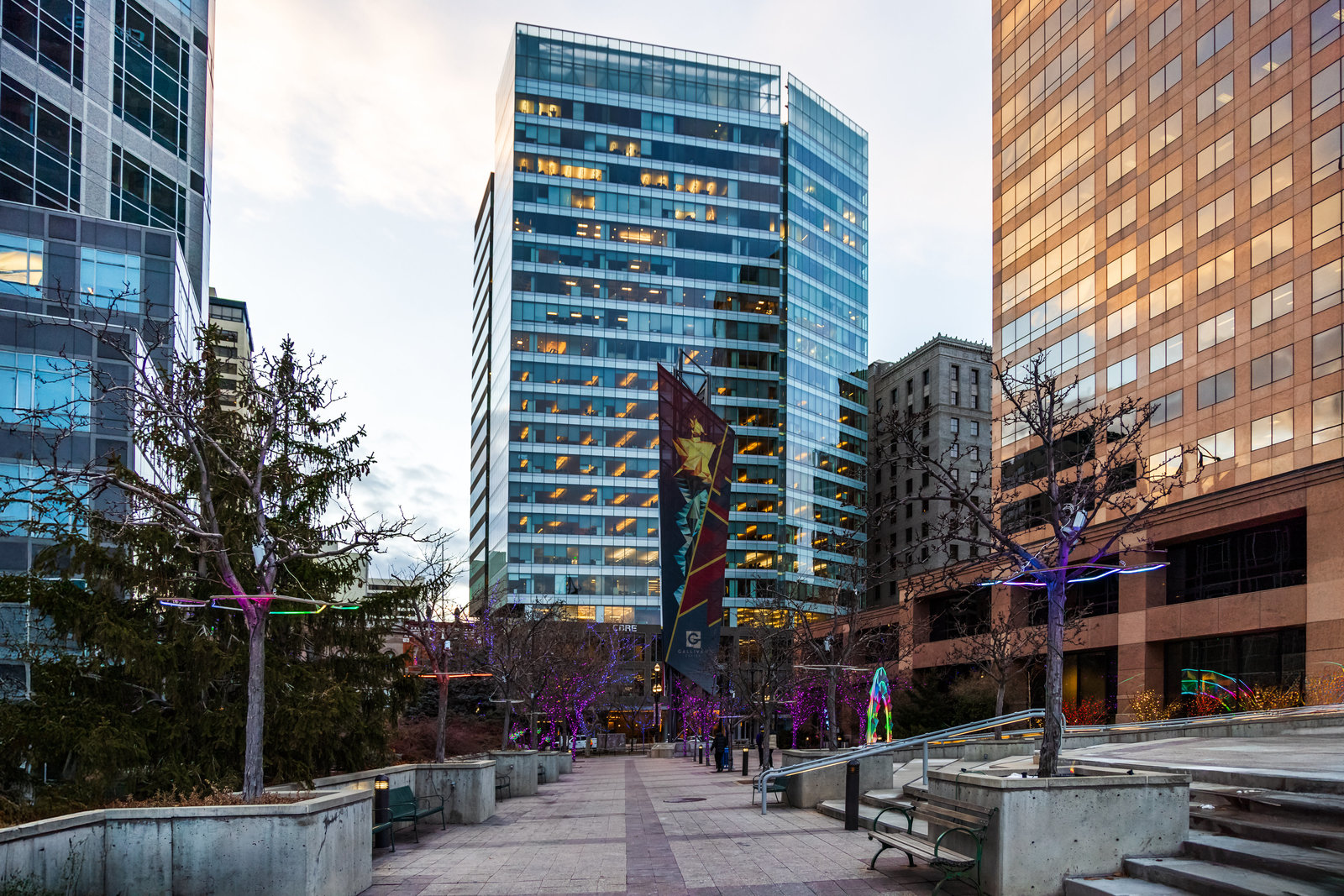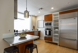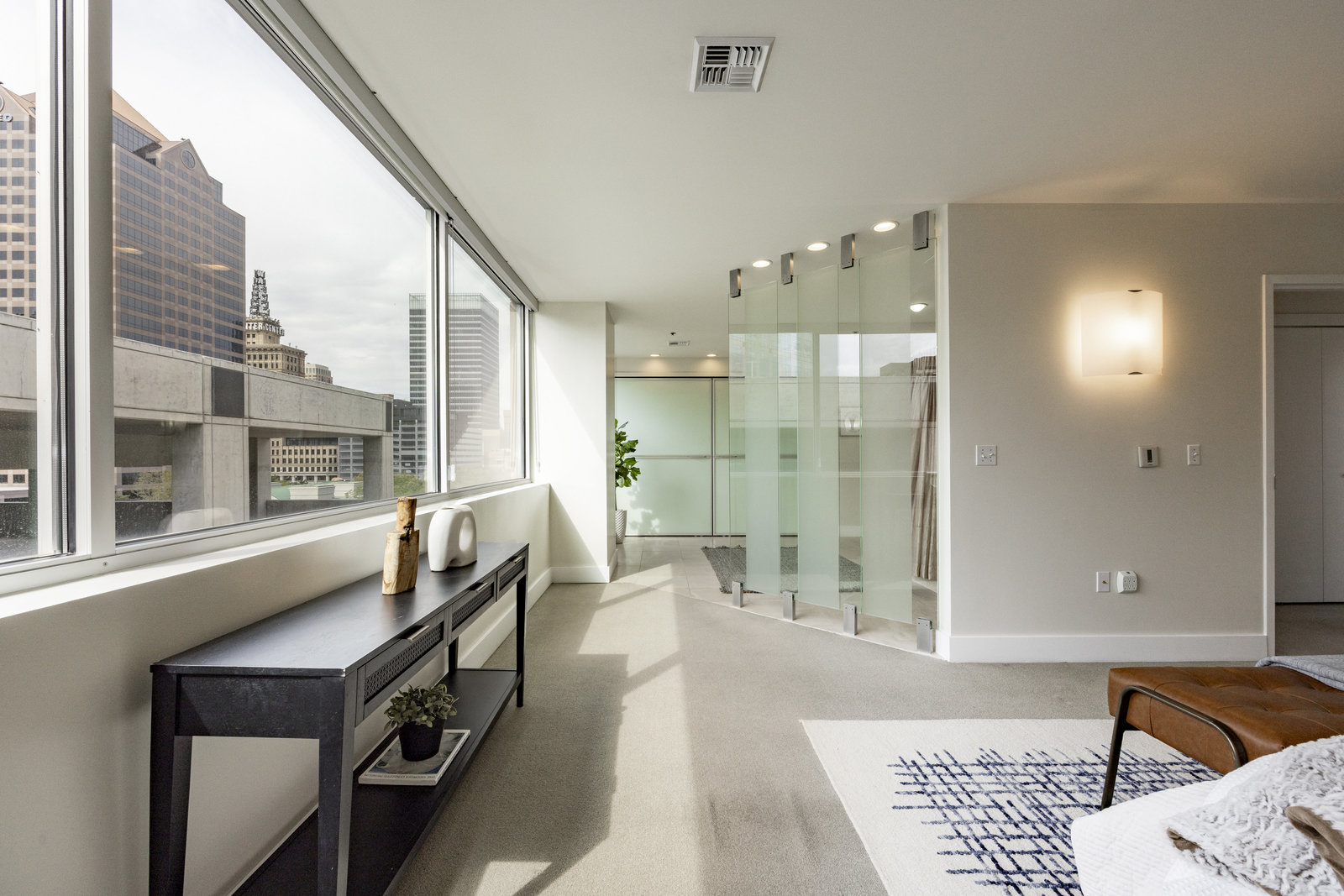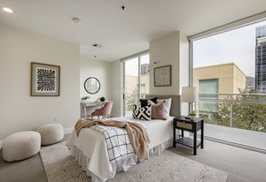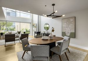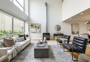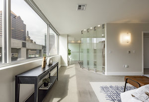 This stunning contemporary condominium offers a peaceful respite from the busy city streets below. Anchored on the historic Brooks Arcade building, which underwent a full restoration in 2002, this unit marries the charm of old with all the benefits of new construction. Floor to ceiling windows bring in lovely east-facing sunshine and add to the feeling of openness and calm that you will feel as you walk in the door. The private Primary en suite is spacious and soothing. Adding to the serenity, the entire rooftop is an urban oasis, an expansive park filled with mature trees and shrubs, elegant planters, inviting walkways, a separate firepit area and cozy meeting spaces. Your very own retreat from a ...