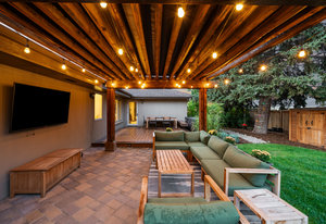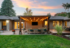 Spanning 4,047 total sqft and a short 4-minute walk to Slavens, this ranch-style home on an extensive lot offers five bedrooms and a dedicated office, capturing the essence of Wellshire living: quiet streets, generous space, and lasting character. Ascend the layered front path to an inviting front patio. Upon entering the main living area, a full wall of west-facing windows brings in natural light, capturing evening sunsets. A statement stone fireplace & custom built-ins anchor the room. The kitchen & dining areas carry the same character forward. Exposed wood beams & intricate detail add texture, while leathered granite countertops, a farmhouse sink, custom hood, and oversized island create a kitchen balancing form & function. The adjacent walk-in pantry & coffee bar are thoughtfully incorporated, adding additional prep space. A dedicated dining area sits alongside the centerpiece island, positioned to connect directly to the backyard. The large rectangular lawn is ideal for outdoor play & recreation. Whether it’s a game of soccer or a friendly badminton match, there’s space for it all! A pergola-covered patio offers shade, while an elevated deck creates additional gathering space, complete with a hot tub. The main level is anchored by a true primary suite with deck access, a five-piece bath featuring dual vanities, a walk-in shower, a soaking tub, and an oversized walk-in closet. Two additional bedrooms & a full bath sit on this level, along with a private office behind dramatic French doors. The finished basement provides expansive additional living space with flexibility for media or hosting, and is pre-plumbed for a future wet bar. Two additional bedrooms with egress windows and a ¾ bathroom offer comfortable guest accommodations. Moments to Wellshire Golf Course, this is a rare offering in one of Denver’s most sought-after neighborhoods.
