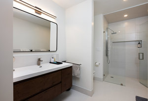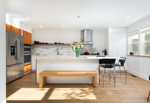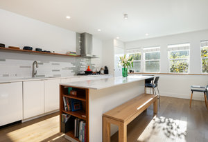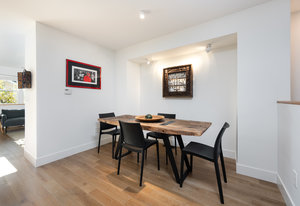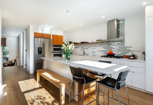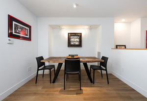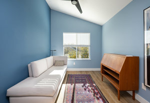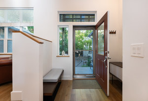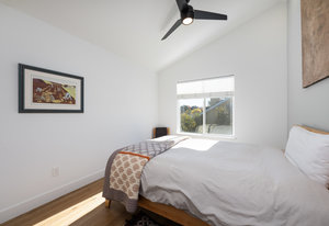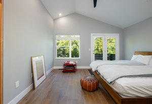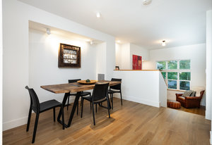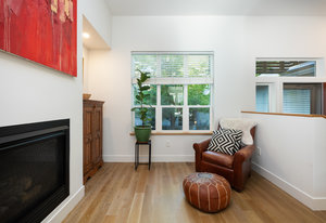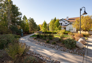 This sophisticated townhome truly is like no other. Thoughtfully renovated and defined by natural light, clean architectural lines, and refined finishes, this southeast-facing residence offers a rare blend of modern design and serene surroundings. Elevated above the street and framed by ornamental pear trees, the home enjoys soft morning light and a treehouse-like sense of privacy. The open floor plan features opposing windows overlooking mature greenery and a pedestrian pathway, creating bright, connected living spaces. Level-4 wall finishes and cohesive flooring establish a smooth, contemporary aesthetic throughout. The redesigned kitchen includes KitchenAid Architect Series appliances (refrigerator, microwave, oven, cooktop, hood), European high-gloss cabinetry, solid cherry accents, and 2 cm and 3 cm quartz countertops. Renovated bathrooms offer walk-in Schluter shower systems and updated modern fixtures. Additional improvements include hardwood flooring on main levels, LVT flooring on the lower level, solid white oak window sills and wall caps, 6" base trim, new interior slab doors and hardware, new bedroom closets, fresh paint, Lutron dimmers throughout, upgraded electrical, and a new Bradford White electric water heater. Outdoor living includes a Mediterranean-inspired flagstone courtyard and an extended front porch with Trex decking. Located in Indian Peaks/Hedgerow Townhomes in Boulder County, a small neighborhood with community gardens, dog park, fruit trees, quiet paths, lush greenery, and convenient access to nearby shopping and dining. Move-in ready and designed for effortless living.
