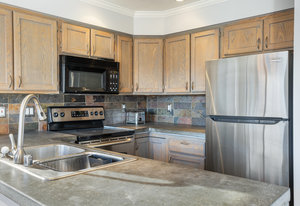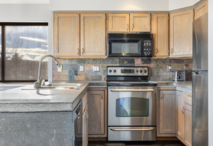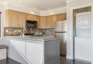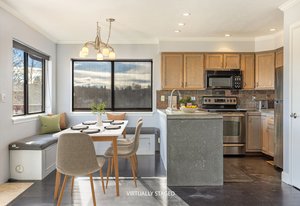 Enjoy panoramic southern views from the sunny deck of your new home! This bright, 2 bed 2 bath home boasts an oversize 1- car garage, covered carport, and additional guest parking in a convenient Wildridge location. With concrete countertops, an open floor plan, and hardwood floors it is clean and move-in ready. Walking distance to the point and easy access to trails and pocket parks, Ridgeline Condos also enjoy a large communal greenspace. This home won't last!