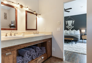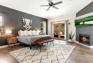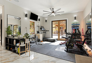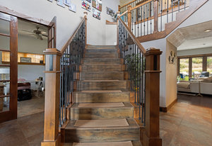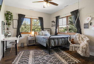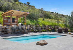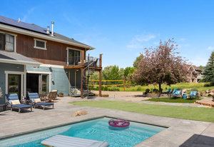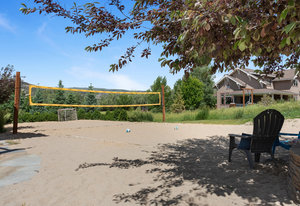 Here is the home you have been waiting for in Eagle Ranch! Situated on a manicured and well-designed over half-acre lot, this exceptional 6-bedroom, 5 bathrooms plus office with a large ADU for rental income or in-law suite is not to be missed. The home features central air, and zoned forced air heat, a designer kitchen with a built-in coffee bar, Wolf range, walk-in pantry, and a large island with seating for 6. Moreover, the home boasts an incredible oversized 2-car garage with a lined rubber tile matting floor, massive storage, 2 work bench areas and even has a motorized car lift for that extra sports car. New to the home was an expansive remodel of over a 300 square foot laundry/mudroom and gym area that flows out to your pool patio. The open main floor welcomes gatherings which flow from the kitchen and living area to the one of a kind and unbelievable back yard with the following: a salt water in-ground pool, hot tub, a covered gazebo area with an outdoor pizza oven, Traeger grill and wall mounted TV, a fire pit patio, lounging patio area and a full-sized official beach sand volleyball court. The primary bedroom is upstairs and is appointed with a large walk-in closet and bathroom, a gas fireplace, and a south facing private deck with a seating area and a spiral staircase to access the backyard. The other 2 bedrooms upstairs also have vaulted ceilings and share a bath. There is another guest bedroom off of the living area and an additional bedroom off the family room in the lower level. The lower level is fully finished with a large media room and game area with a wet bar, and, best of all - the secret room. Behind a door and down a hallway leads you to the speakeasy/wine/gambling room. The ADU above the garage has a separate entrance with a private deck which leads into a large living room, kitchen, full bath and 1 bedroom. While being only a few minutes from downtown Eagle Ranch and Eagle, this home has a rural setting and is on a quiet dead end street.