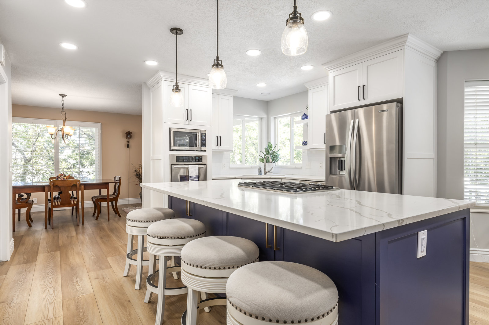 Meticulously maintained and thoughtfully updated, this stunning property is truly one of a kind! Step into the gorgeous remodeled kitchen featuring high-end cabinetry, quartz countertops, and durable vinyl plank flooring. The spacious 4-car garage-plus RV parking-offers ample room for all your vehicles and toys. Enjoy the cozy fireplace in the master bedroom, complete with a beautifully updated ensuite bathroom and private balcony retreat. The home features two furnaces and A/C units for year-round comfort, and a central vacuum system adds convenience throughout. The nearly full kitchenette in the basement makes entertaining or hosting guests a breeze, while the home offers plenty of storage space ...