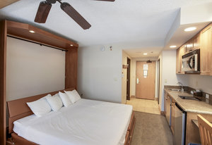 Welcome to Grand Lodge Unit 218. This turn-key mountain condo is ideally situated at the base of Mt. Crested Butte Resort. The unit comfortably sleeps four with a king-size bed and a king-size Murphy bed. It also features a sitting area and a convenient kitchenette, equipped with a mini-fridge, dishwasher, microwave, and cooktop. The HOA fees cover all utilities, a fitness center, an indoor/outdoor pool, a hot tub, and more. Enjoy easy access to the slopes, shops, restaurants, and the free shuttle bus—all just steps from the base area. A fantastic opportunity to enjoy mountain living and generate income while you are away.