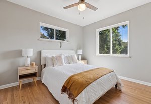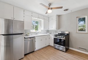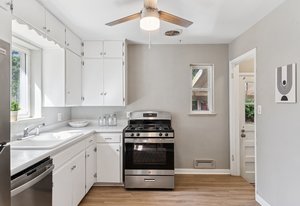 Beautiful, light and bright mid-century brick home in desirable Harvey Park. This solid 4-bedroom, 2-bath home sits on a quiet, tree-lined street on a large lot. Enjoy all the original charm you would expect from a mid-century home, including coffered ceilings, original (newly refinished) hardwood floors, and large windows that bathe the entire main floor in natural light. The ideal layout provides three bedrooms, kitchen, large living area and bathroom on the main level. The kitchen features ample storage and all new stainless steel appliances. The basement offers another large living area, fourth bedroom, additional bathroom, and bonus space, perfect for a workout room or office. There is also a large laundry and storage area with a utility sink. The expansive, fully fenced backyard is a true outdoor oasis, offering endless possibilities for entertainment and relaxation. There's ample room to build a garage or even an ADU for guests or passive income. This ideal location is just 10 minutes to Downtown Denver, close to Red Rocks amphitheater, and a short stroll to Harvey Park, with a serene lake and walking path, a recreation center with a pool, tennis courts, and fun-filled summer events like movie nights and festivals. Welcome home.
