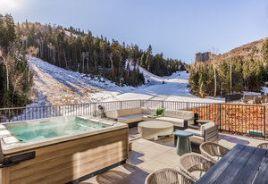 A large deck with private hot tub and outdoor dining/lounge area means you can sit back and enjoy the outdoors. Situated on Deer Hollow (green) Ski Run, families can watch their littles ski past with instructors or build snowmen in the back yard in evenings.