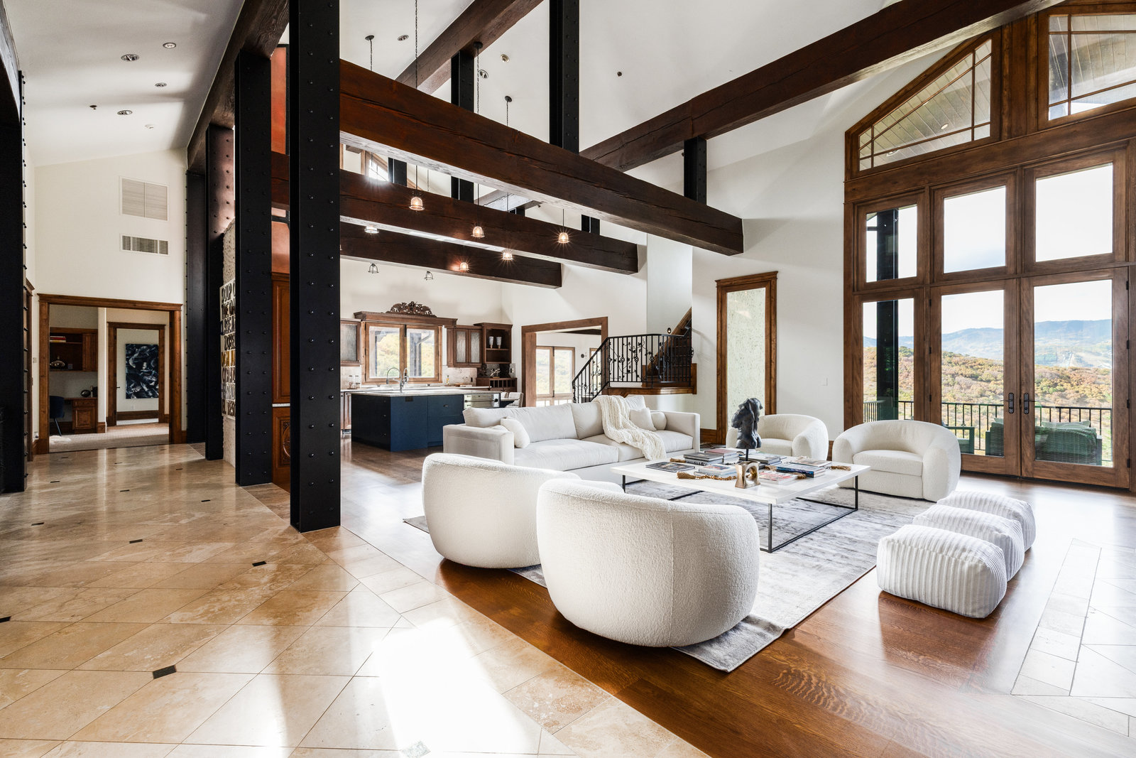Step into a storybook home where Park City's rugged mining past meets timeless European elegance. Imagined as if a hardworking turn-of-the-century miner joined his life with a refined socialite, this residence reflects both grit and grandeur. Built with enduring craftsmanship, the home's warm wood beams, stone accents, and expansive mountain views echo the miner's roots. In contrast, the interiors whisper of sophistication, each space curated as though the lady of the house had traveled through Europe with her decorator, gathering fine furnishings, textures, and design details that layer the home with old-world charm.