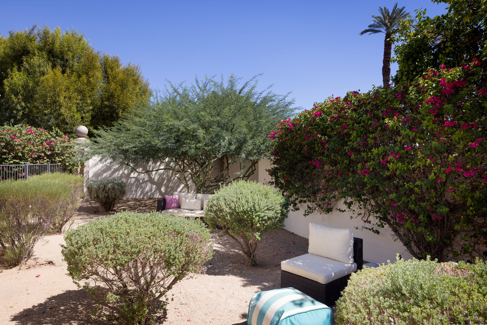 Lush landscaping and layered patios provide countless spots to watch the moon rise over the North Patio stage as the sun sets behind the Santa Rosa Mountains—a setting that is both dramatic and serene.