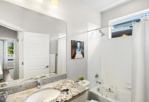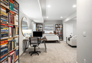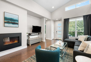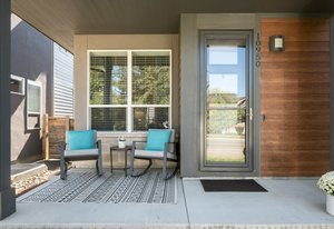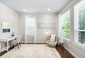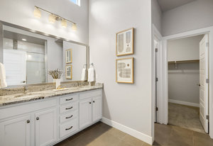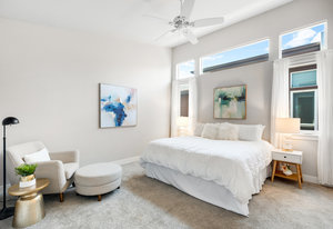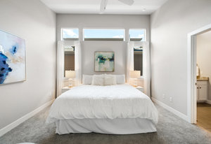 The private primary suite offers vaulted ceilings, abundant natural light, and a spa-inspired bath featuring dual vanities, an oversized shower, and a walk-in closet. Main-level office at the front of the home. Mudroom that exits to an attached two-car garage with double-height for extra storage.