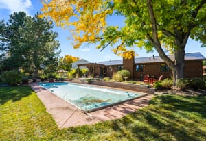 This lovely ranch home has true pride of ownership throughout, with the same owners for over 45 years. The home backs up to a large park and providing a special and unique sense of openness, privacy, and uninterrupted views space . The floor plan is designed for comfortable living & effortless entertaining, set on a generous corner lot. There is new paint and carpet up stairs. A Tesla solar roof enhances the home with modern efficiency owned with back up batteries.The main level offers a gracious flow, beginning with a formal living room anchored by a large picture window that fills the space with natural light. Enjoy the formal dining I living room next to the updated kitchen, perfect for both everyday living & hosting. The kitchen features abundant cabinetry, quartz countertops, and an eat-in space with direct access to the backyard. A spacious great room provides a comfortable gathering place centered around a wood-burning fireplace. The primary suite is truly impressive, offering a massive bedroom, has 2 closets including a walk-in closet, & a ¾ bath. Two additional bedrooms share a full hall bath, complemented by a convenient half bath & a dedicated laundry room, all on the main level. The partially finished basement adds space with a large flex area, a non-conforming bedroom with built-in bookcases and a Murphy bed, a ¾ bath, and a large storage and utility room—ideal for those who value workspace, organization, & flexibility. The backyard is open, expansive, with a pool, a patio with a pergola, backing to the park, and enhancing the sense of privacy and tranquility. The front of the home is equally welcoming, featuring a charming front patio & rose garden. Ideally located within walking distance to schools and parks, with easy access to shopping, dining, Highway 36, and I-70, this home offers quick connections to downtown Denver, Golden, and the foothills—bringing together space, sustainability, location, and livability in one exceptional Arvada setting.
