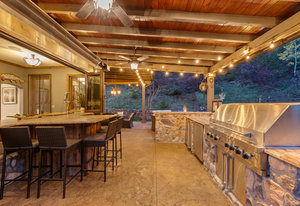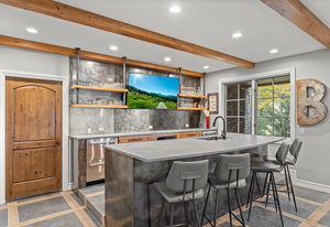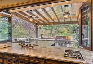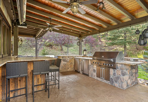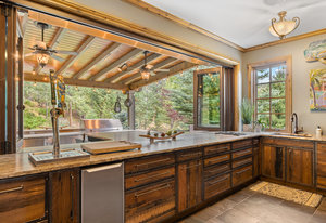 Perched in Evergreen’s exclusive Ridge neighborhood, this one-of-a-kind residence embodies the best of mountain luxury—where architectural integrity meets effortless comfort. Inside, walnut hardwood floors and handcrafted metal railings lead through bright, open spaces designed for both connection and retreat. Solid alder doors, custom millwork, and Savant whole-home automation create an atmosphere of understated luxury. Gather in the heart of the home — a chef’s kitchen equipped with Sub-Zero refrigeration, dual Asko dishwashers, GE commercial range, and dual sinks set within Caesarstone-topped islands. Step through to the indoor/outdoor kitchen, where a custom folding window system merges the interior with an outdoor entertaining pavilion. Outfitted with Sub-Zero, Wolf, Viking, and Miele appliances, reclaimed chestnut cabinetry, and exotic granite, this space is a true showpiece. Dine beneath radiant gas heaters beside a fire pit overlooking Evergreen’s pine-filled ridgelines. The lower walkout level invites entertaining, recreation and relaxation — a full media room with reclining theater seating, custom wet bar, and a climate conditioned wine cellar. Upstairs, the primary suite defines serenity, featuring a sitting area with double-sided fireplace, dual custom closets, and a spa-inspired bath with steam shower and radiant floors. Each secondary bedroom offers an en-suite bath and walk-in closet. Practical luxury continues with in-floor radiant heat, full second-floor air conditioning, three fireplaces, and a heated three-car garage with epoxy floors. From design to detail, this home stands out as a rare opportunity to possess and enjoy this builders creation — a masterwork of craftsmanship and comfort nestled in one of Evergreen’s most desirable communities.