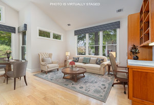Welcome home to a charming 3-bedroom, 2-bathroom single-level ranch home nestled in the prestigious Camden Park neighborhood of the highly sought-after Fearrington Village. This delightful home features a private courtyard, providing a serene oasis for relaxation. Its prime location offers easy access to the picturesque Camden Park, perfect for leisurely strolls, and a quick hop over to the village, where you can explore its vibrant shops, delectable restaurants, rejuvenating spa, and captivating bookstore. The home boasts spacious hardwood floors, newly installed carpet, new microwave and freshly painted walls, creating a warm and inviting atmosphere. The open-concept kitchen, complete with warm-tone wood cabinetry, a cozy breakfast nook and a Keeping Room, seamlessly flows into a spacious dining room and living room, providing ample space for family gatherings and entertaining guests. This home is well suited for aging-in-place with no steps from the garage, single level living, wide doorways and only one step to the front door. The primary bedroom features an ensuite bath and a generous walk-in closet, ensuring comfort and convenience. Two additional bedrooms offer versatile options for accommodating guests or creating flexible living spaces. The home conveniently connects to a two-car garage, providing easy access to your vehicles. Immerse yourself in the vibrant community of Fearrington Village, renowned for its numerous clubs, groups, and activities, making it one of the most lively and popular places to reside in Chatham County, if not the entire South!