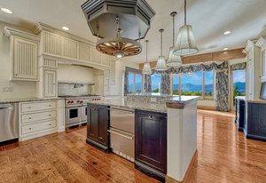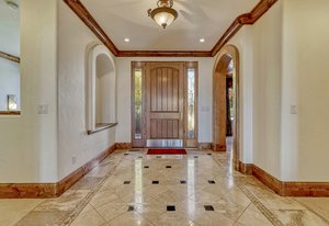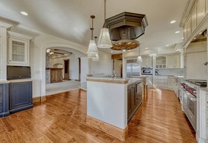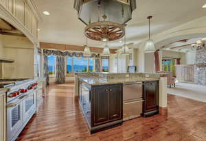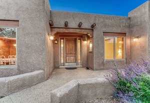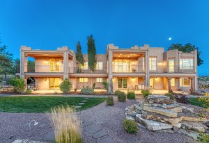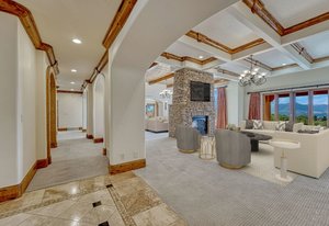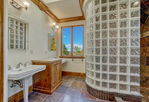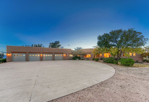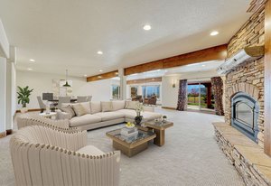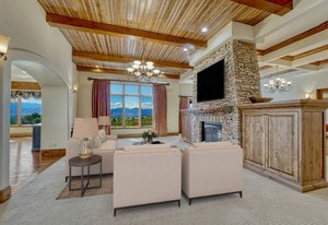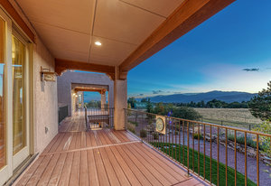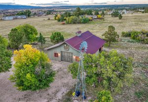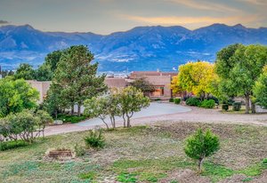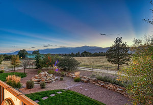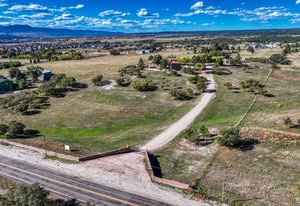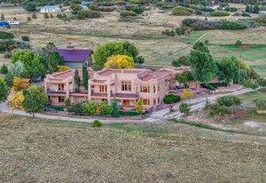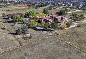 Contemporary Hacienda-inspired estate located in south after and close-in southwest Black Forest on 6.27 acres. Sweeping 180 mile views of Pikes Peak, the surrounding mountains and the twinkling city lights in the evening. Sprawling luxury ranch home w/ stunning Spanish architecture spans over 10,000 square feet w/ walk-out basement, living areas designed around phenomenal view corridors with indoor-outdoor living at top of mind, all ensuite primary bedrooms, 3 laundry rooms, 6 baths and an expansive 78x11 composite deck with the captivating mountain views. Four car attached, heated and oversized garage. Stylish 39x48 workshop/RV garage/barn with electric, two animal stalls, large overhead door with water and electric. This is the best of both worlds - living on serene acreage w/ no covenants or HOA while having the best amenities mere minutes from your location. Over 2,000 acres of open space w/ equestrian trails, playgrounds and parks within 10 minutes. Quick access to two major hospitals, the Air Force Academy, The Flying Horse Golf Course and all of the amenities of Briargate and Northgate. Gormet kitchen w/ two tone cabinetry, gas commercial range, Sub-zero refrigerator, warming drawer, pot filler, slab stone counters, gorgeous wood floors and an abundance of storage. Four primary suites - two on each level. The home features sprawling room sizes, expansive high quality windows centered on views, central air conditioning, wood beamed ceilings, custom built-ins, 3 fireplaces, tall ceilings throughout, high end trim, crown moulding and doors. Finished walk-out lower level w/ secondary kitchen, 3rd laundry, large wet bar, theater room and family room. Lush landscape w/ boulder water feature, lush green lawns, beautiful flower, a variety of trees, fenced yard, raised garden beds and a greenhouse. Zoned for horses, additional outbuildings and other animals. Fenced and electronic gate w/ stately stone entrance. All paved and county maintained roads to the property.