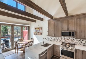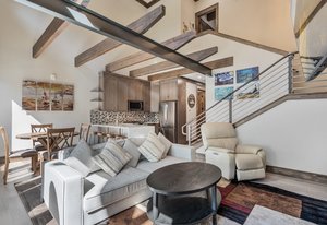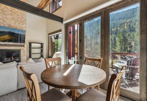 Discover this turnkey 2-bedroom, 2-bathroom condo with 1,066 square feet of mountain modern living. The open-concept layout is accented by vaulted ceilings that create a bright and inviting atmosphere. The well-appointed kitchen features a gas range and stainless steel appliances, blending style with function. After a day of skiing or mountain adventures, cozy up next to the gas fireplace and relax in comfort or enjoy story telling out at the community hot tubs. Upstairs, the primary suite offers a private retreat with vaulted ceilings, a walk-in shower, and a double vanity. Fully furnished and move-in ready, this home provides effortless comfort. Located on the Keystone Shuttle route, you’ll have direct access to world-class skiing, making this the perfect mountain getaway or investment property.