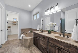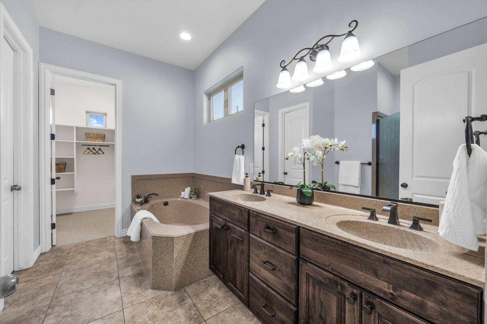 Step inside this beautifully updated 4-bedroom. 2.5 bath home where modern design and everyday practicality come together. The heart of the the home shines with luxury vinyl plank flooring, fresh designer paint, new stainless steel appliances and new lighting that adds a warm, contemporary glow. You'll love the plush new carpet underfoot, creating cozy retreats in each of the spacious bedrooms. The primary suite is a true sanctuary, opening to its very own private covered patio - the perfect spot to enjoy a quiet morning coffee or an evening wind-down. Out front, the welcoming gated courtyard provides both charm and peace of mind, creating a secure entry and an inviting outdoor living. The kitchen and living areas flow seamlessly for gatherings and entertaining, while the 3-car garage provides room for cars, toys, storage, or even a workshop. Every detail has been thoughtfully refreshed so you can move right in and enjoy. While some may wish for a sweeping view, this home offers something many buyers prefer: a private, low-maintenance backyard framed by neighboring homes, creating a sense of security and community. Instead of worrying about exposure, you'll enjoy a protected outdoor space that's perfect for grilling, gardening, or relaxing with friends--your own comfortable extension of the home. If you're looking for modern updates, a private retreat, and the added benefit of a gated community lifestyle, this home truly has it all.