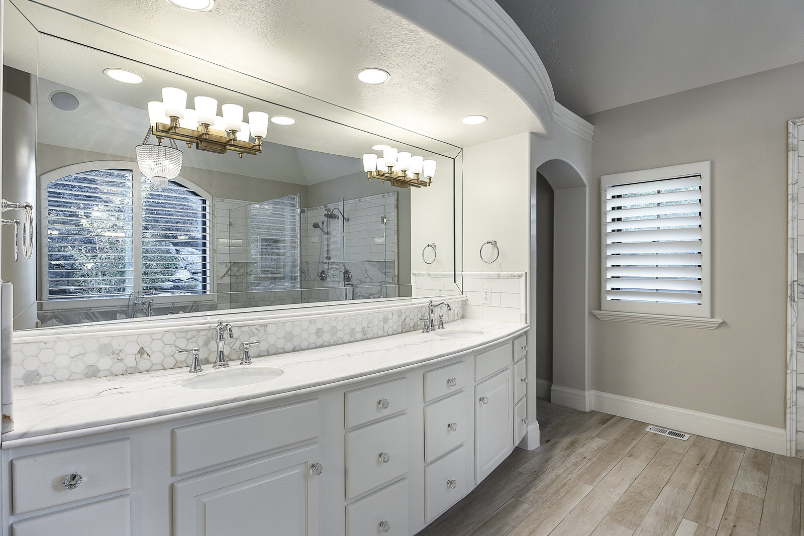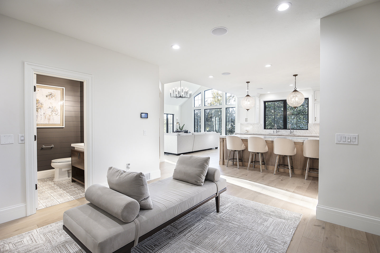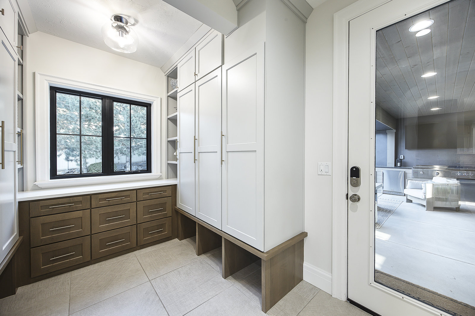 Elegant imported Italian white oak flooring, exquisite millwork by Dream Woods (renowned for their craftsmanship in LDS temples), and a whole-home audio system add sophistication and comfort. The mudroom features deep, functional lockers with generous storage and hanging space for coats and gear.