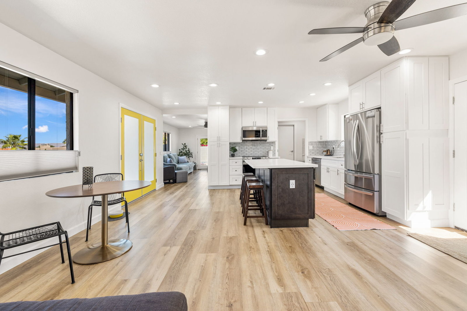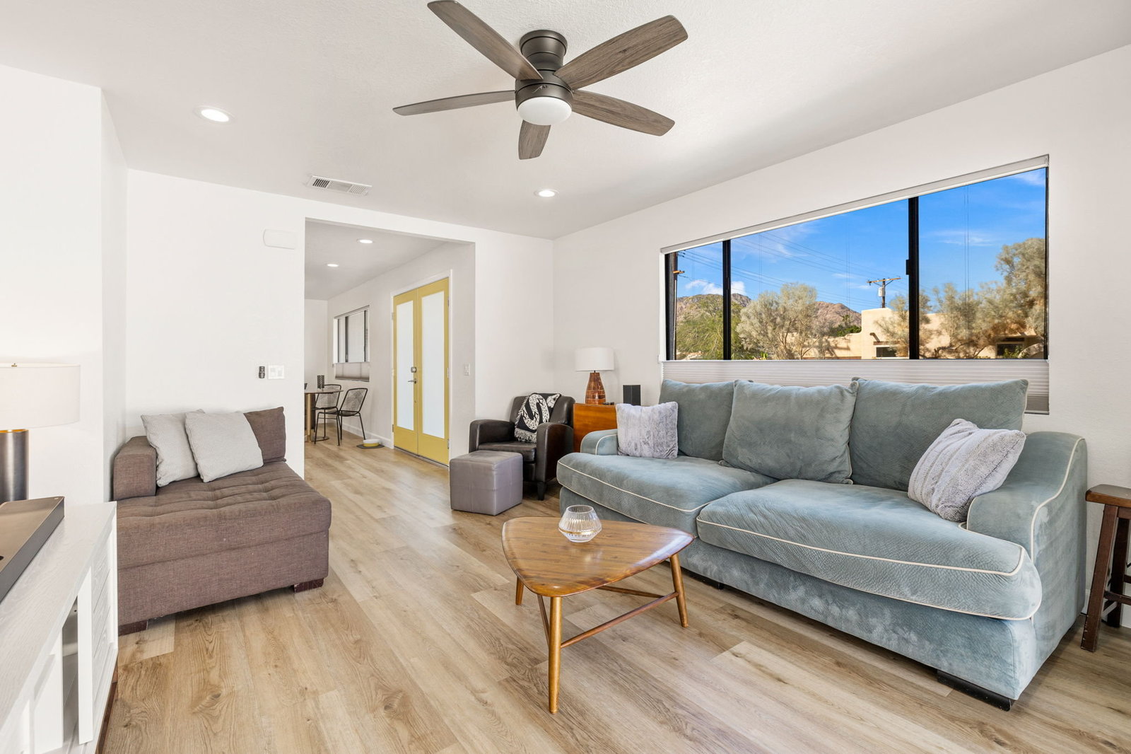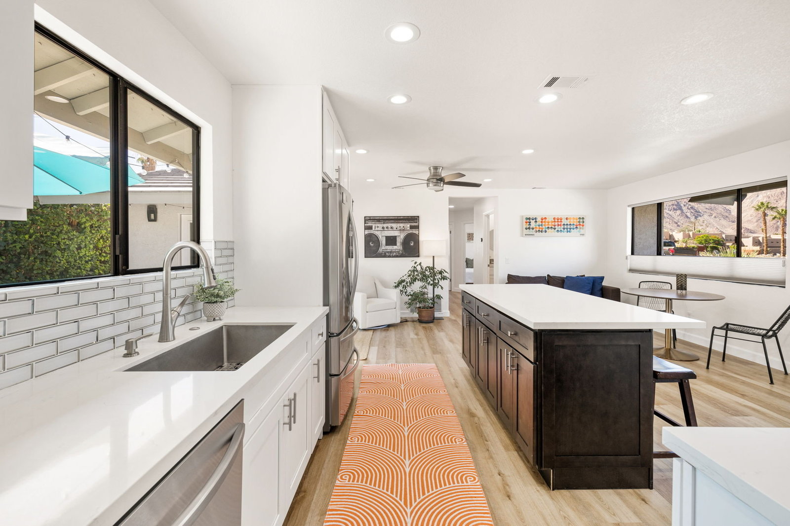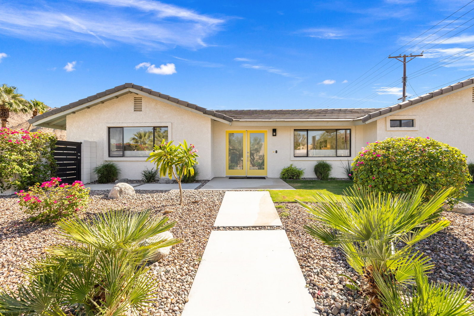 Welcome to your desert retreat! Perfectly situated on a premium corner lot in the sought-after top of the Cove location. This move-in-ready home, surrounded by breathtaking mountain views and abundant natural light, embodies the essence of desert living. Step outside to the sparkling pool, where sweeping views create a stunning backdrop and wide entry steps invite you to relax or wade in the sun. Inside, the gourmet kitchen is sure to impress with stainless steel appliances, plenty of storage, a kitchen island, and upgraded lighting, creating the perfect gathering spot. The spacious primary suite opens through French doors to a private courtyard retreat, where a soothing outdoor soaking tub and shower create a tranquil space for unwinding or bathing under the stars. This serene outdoor area offers the perfect balance of comfort and privacy, seamlessly blending indoor and outdoor living. Two inviting guest bedrooms offer comfort and style for family and friends, while updated baths add convenience. In the rear yard, a gated driveway offers additional parking or storage space, ideal for accommodating extra vehicles or outdoor gear, perfect for both full-time living and a lock-and-go lifestyle. This home also features solar, providing increased efficiency and helping to reduce monthly utility costs, a feature that adds long-term value and peace of mind. Just a short walk to Bear Creek Trail and minutes from Old Town La Quinta, you’ll enjoy easy access to top restaurants, boutique shopping, hiking, pickleball, and year-round entertainment. If you’ve been searching for a move-in-ready home in an unbeatable location with spectacular mountain views, this one is not to be missed!