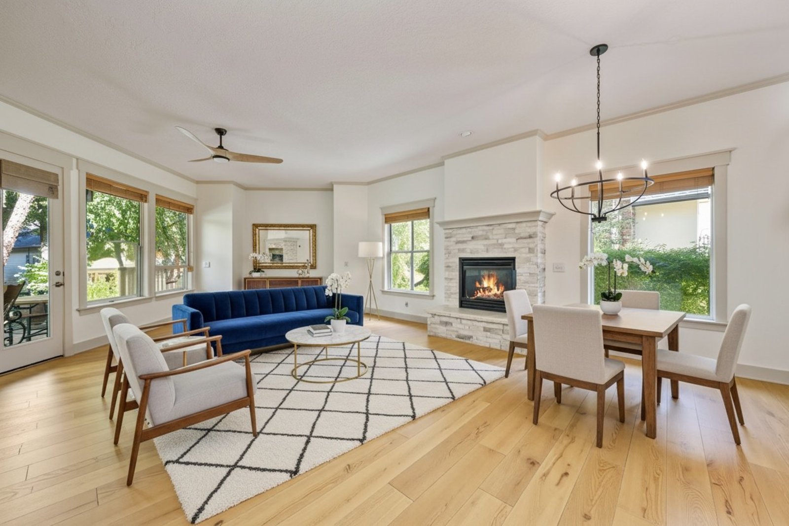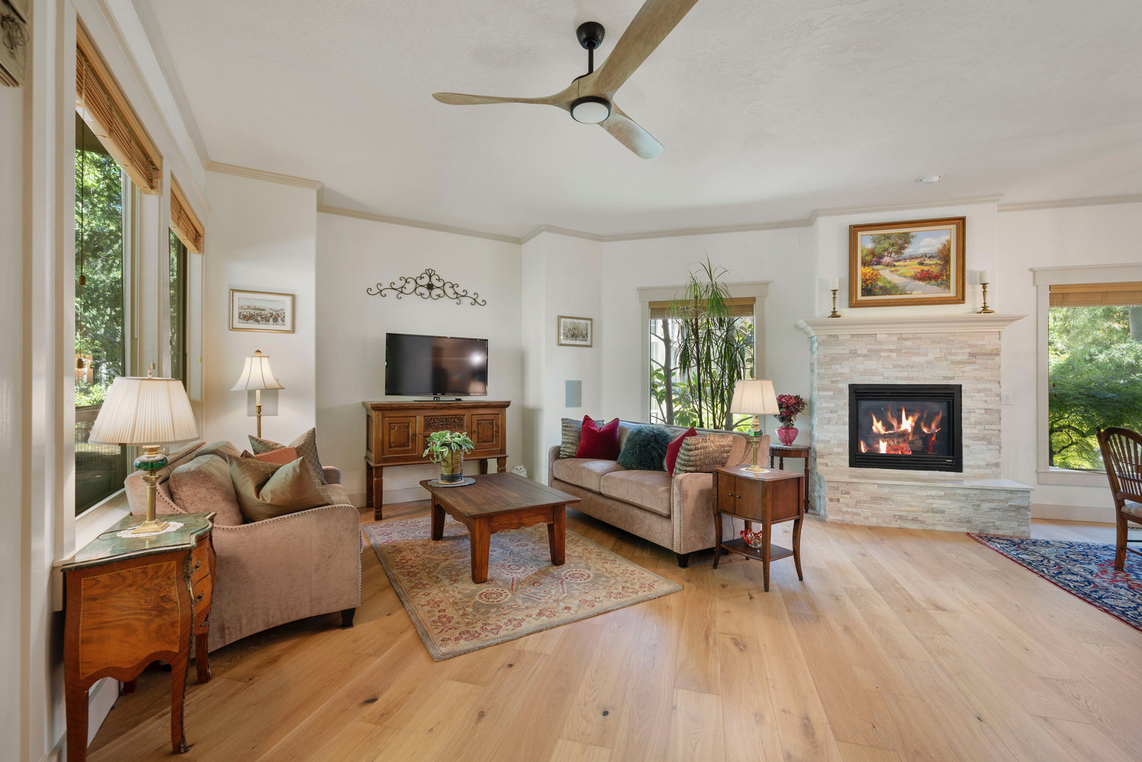 A serene, luxury retreat in The Streams at Two Rivers, a prestigious gated community designed for effortless living. This beautifully updated waterfront home offers refined comfort with rich hardwood floors, designer lighting, upgraded appliances, quartz countertops, fresh interior palette, and a striking stone fireplace as the centerpiece of the great room.