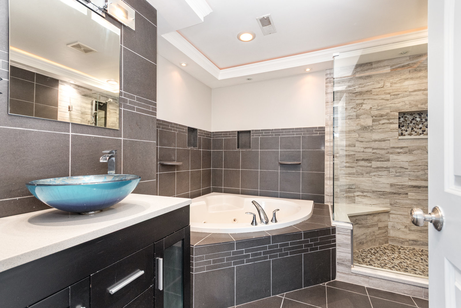 Upstairs, each bedroom enjoys its own full bath and custom walk-in closet, providing comfort and privacy for every member of the household. The primary suite impresses with a jetted soaking tub and pulse-jet shower—a true ...