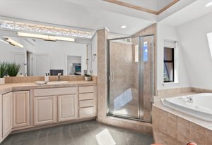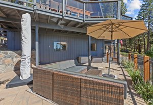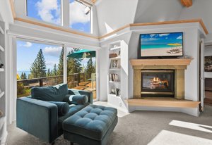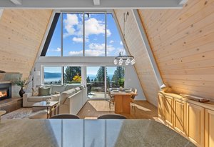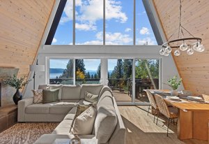 Located on a quiet cul-de-sac, this lakeview home backing to forest land is a must see! Positioned on the north side of the street the south-facing slope provides natural light from sunrise to sunset and clear views across the lake from the East to West Shore. The open living area with high ceilings and a wall of glass transitions outdoors to expansive lake views from the spacious south facing deck wrapping around to a private spa area with a water feature and path to the lower paver patio. Inside the property provides an open kitchen and living area, large primary suite, a private loft and bedroom suite, two additional bedrooms or flexspaces and 2 attached garages. The property backs up to acres ...