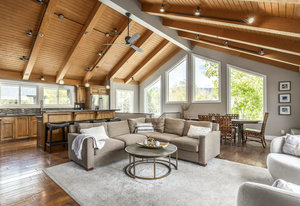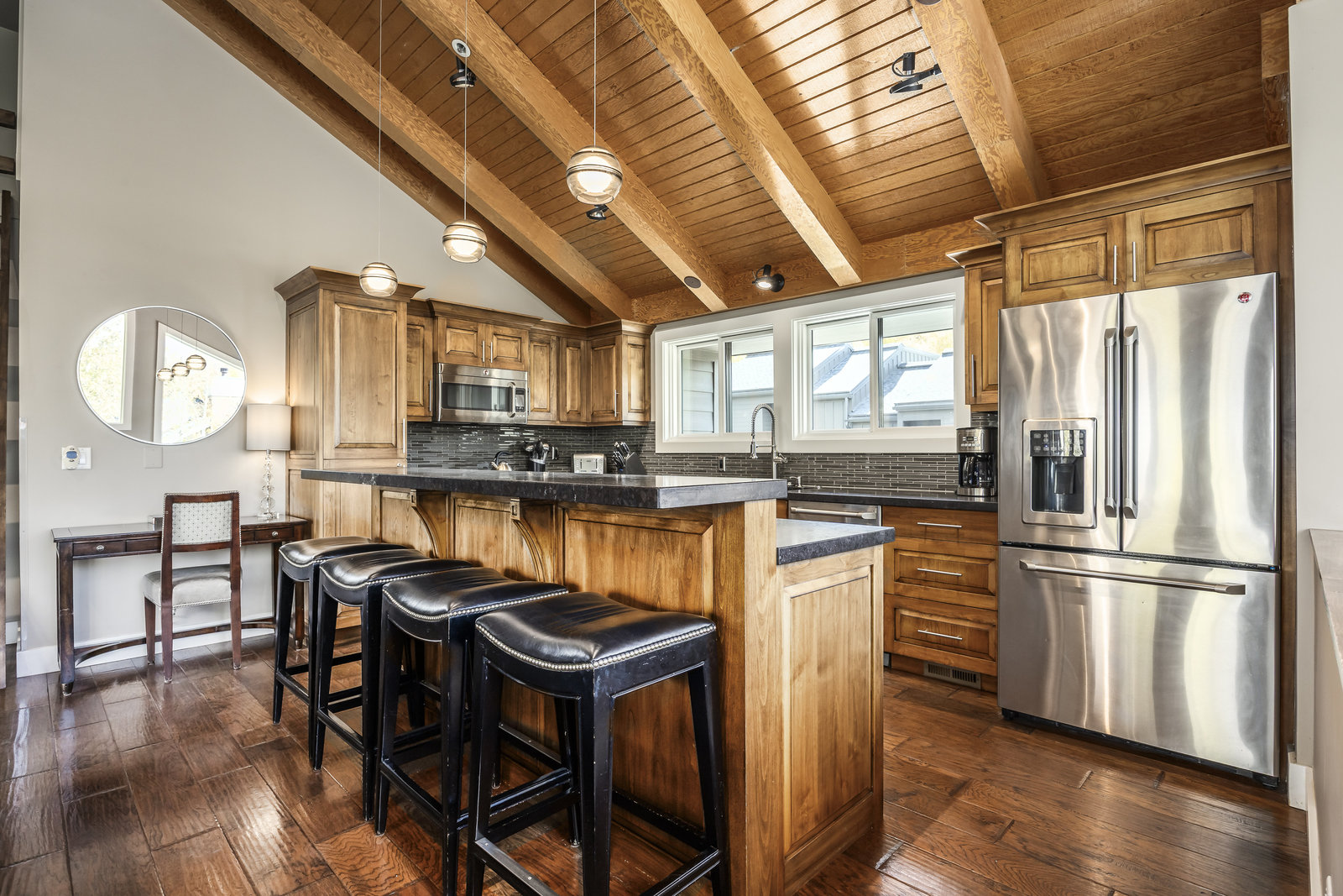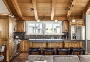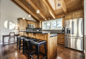 Enjoy seamless indoor-outdoor living with an open floor plan and easy access to the private deck and hot tub—perfect for après-ski relaxation or summer evenings under the stars. The spacious kitchen offers generous counter space ideal for prepping and entertaining. Beautifully upgraded finishes flow throughout the home, and the primary suite is plumbed for a steam shower to create your own spa-like escape. Both primary and upper level guest suite bathrooms have heated floors to keep those toes toasty during the winter months.