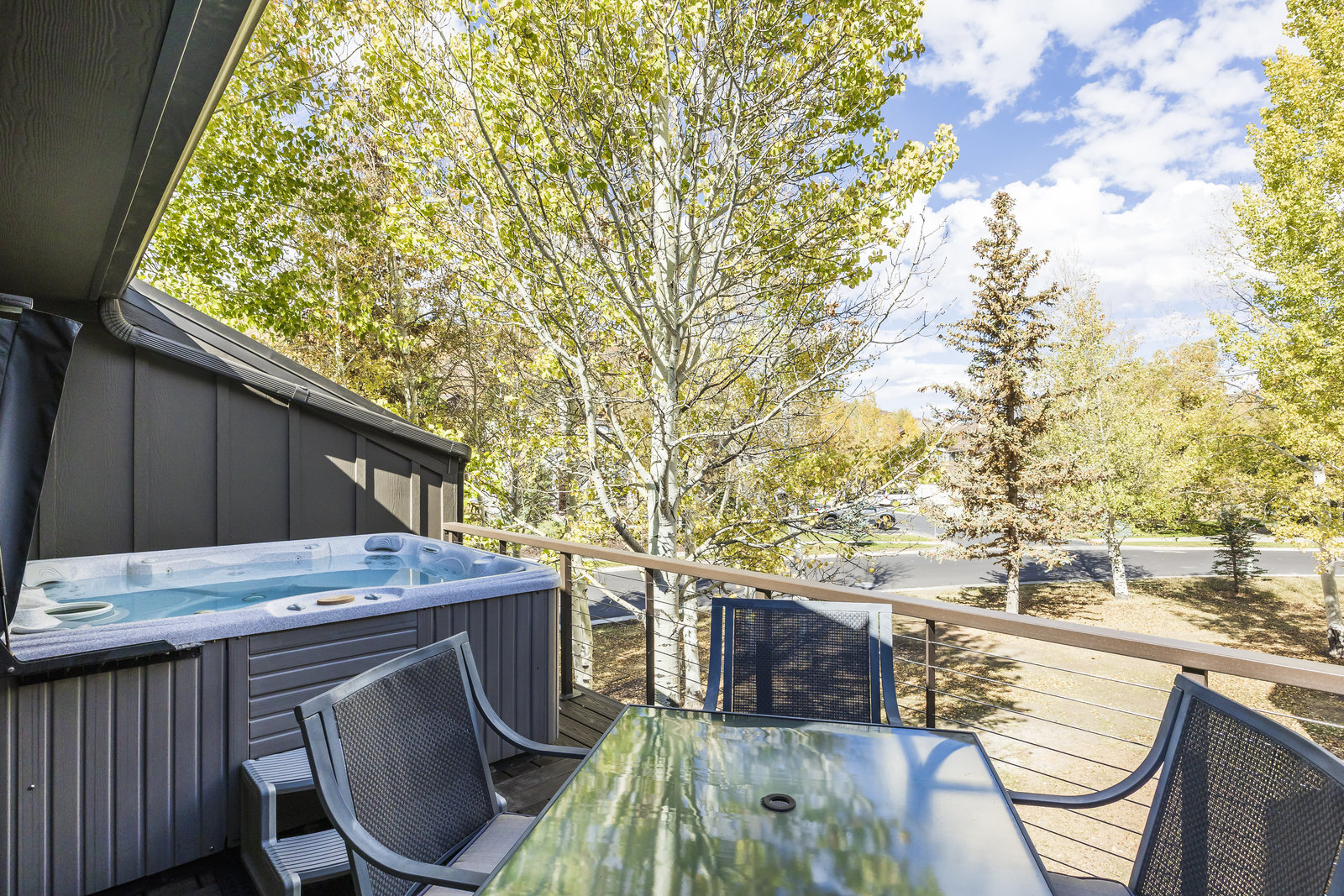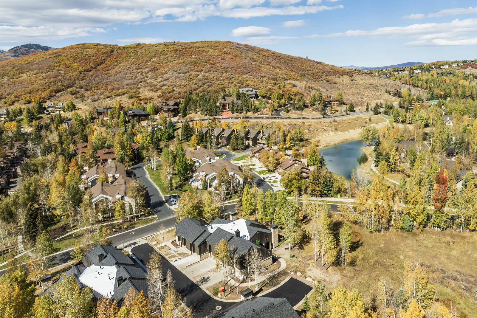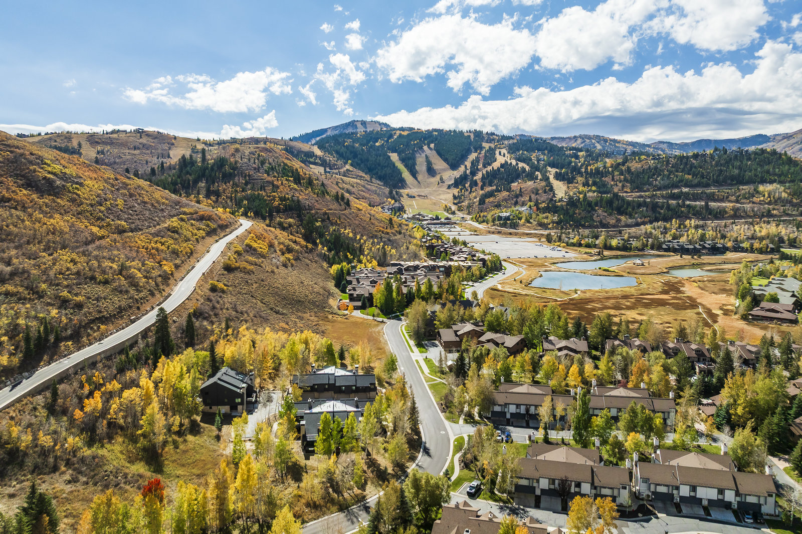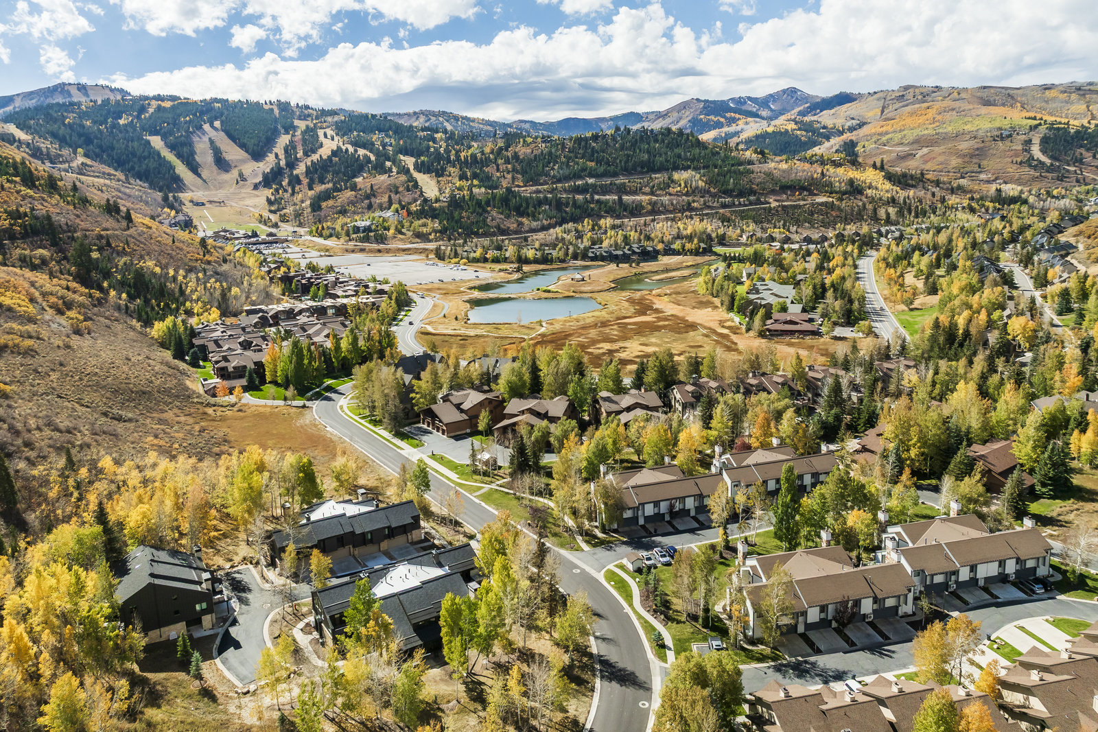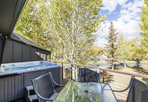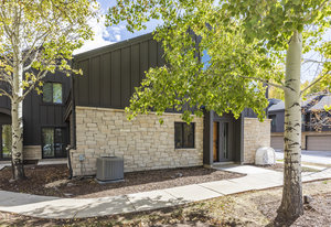 Welcome to this beautifully updated 3-bedroom, 3-bathroom townhome located in the serene Queen Esther Village in Lower Deer Valley. Offering 1,717 square feet of thoughtfully designed living space, this mountain retreat combines modern comfort with timeless alpine charm. Surrounded by mature aspen trees and expansive views of the Wasatch Range, the great room features vaulted tongue and groove wood ceilings, a cozy gas fireplace, and walls of windows that flood the space with natural light.
