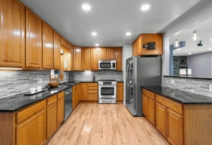 Inside, main-floor living feels warm and welcoming with refinished wood floors, an open layout, and shiplap accents that bring a touch of Colorado charm. The kitchen and baths have been thoughtfully updated, blending comfort with classic style, and the spacious primary suite includes a walk-in closet, private bath, and direct access to the hot-tub patio. An oversized two-car attached garage and a large driveway provide plenty of parking and storage options.