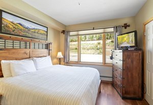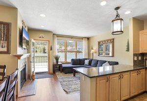 Welcome to your dream lakefront mountain retreat with effortless single-level living—no stairs, no elevator—just walk right in and start living your best life on Keystone Lake near Keystone Village. This fully furnished, turnkey condo in the heart of Lakeside Village offers the perfect balance of relaxation, adventure, and investment potential. Comfortably sleeping four, this spacious one-bedroom, one-bath home captures the essence of mountain living—steps from the lake, the slopes, the bike path, restaurants, shopping, and all that Keystone has to offer. Inside, you’ll love the inviting open layout with newer flooring, BIG south-facing windows, and panoramic views of Keystone Lake and the Tenmile Range. The cozy gas fireplace sets the mood for après-ski evenings, while the fully equipped kitchen and dining area make entertaining effortless. The bedroom features a king sized bed with stylish mountain décor, and the high-quality sleeper sofa provides extra room for guests. Step out onto your brand-new back deck and breathe in the crisp alpine air while taking in the stunning lake and mountain backdrop. In winter, lace up your skates and glide straight from your deck onto the 5-acre Zamboni-maintained ice rink. In summer, launch a SUP or paddleboat, or simply relax lakeside with your favorite beverage. You’ll love the resort-style amenities at the clubhouse—an indoor pool, hot tub, sauna and BBQ sundeck. Walk to the Keystone Lodge & Spa, or hop on the free Keystone shuttle for seamless access to skiing, hiking, biking, golfing, and year-round festivals. With no short-term rental restrictions, no transfer tax, no neighborhood fee, and low HOA dues, this property is an ideal vacation home or high-performing rental investment. Ground-level convenience. Lakefront beauty. Easy access to the slopes and festivals. Turnkey and income-ready. This rare Lakeside Village gem delivers mountain living at its best—priced to sell and ready to enjoy today!