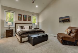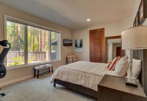 From the great room, expansive glass doors open to beautifully landscaped gardens and spacious patios, creating a seamless blend of indoor and outdoor living. Here, summer days invite leisurely barbecues and alfresco dining beneath the sweeping mountain skies, while evenings bring soft breezes, glowing sunsets, and the unmistakable purity of Tahoe’s alpine air. This is where the art of relaxation meets the elegance of refined entertaining.