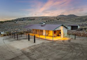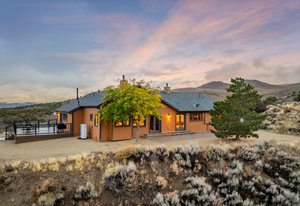 110 Moonstone Lane: A once-in-a-lifetime 200-acre legacy ranch in Red Rock, where rugged wilderness meets refined Western living. This private holding captures the essence of Nevada's open range—rolling hills, panoramic vistas, and miles of trails that begin right off your back porch. Comprising four contiguous parcels, the property's western boundary adjoins over 50,000 acres of BLM land, offering direct and unrestricted access to the Sand Hills and Peterson Wilderness—a vast and untamed expanse ideal for trail riding, hiking, and exploring Nevada's backcountry in pure solitude. The ranch-style residence crowns an elevated ridge with sweeping, cinematic views in every direction. Completely reimagined in 2016, the home blends rustic craftsmanship with understated luxury—featuring Aries Brothers cabinetry, leathered granite counters, Wolf, Miele and Zephyr appliances, a true cast iron clawfoot tub, and real hardwood flooring throughout. Custom built-ins accent each room, and a Jotul wood-burning fireplace with a reclaimed timber mantle from the Davis Creek Ranch anchor the great room, while every window frames an ever-changing visual masterpiece - Sand Hills and Peterson Mountain Wilderness, the Dog Skins and Virginia Peak, Fred's Mountain, and even down to Sonora Pass along the sweeping Eastern Sierra front - almost 120 miles! The equestrian compound is purpose-built for those who ride, train, or simply live the lifestyle. A custom six-stall cedar barn showcases handcrafted ironwork designed for durability and beauty. A secondary barn provides two additional stalls, hay and equipment storage, and a wash rack. The professional-grade 90' x 90' arena and round pen—each built with reclaimed oil field piping and deep concrete footers—are designed to handle serious use. Two custom single-track, multi-use trails of 4.5 miles wind through the property. Rollercoaster trail ascends to the property summit with stunning views back onto the home and barns and up into the exquisite rocks of the Sand Hills. Rock Garden trail explores quartz-laced, wind-carved boulders, and summits the iconic property mesa with 360-degree views of colorful mountains and sweeping valleys unlike anywhere else in Northern Nevada. For the discerning buyer seeking adventure, privacy, majestic scenery, and connection to the land, this property offers it all—breathtaking sunrises and Alpen-glow sunsets, crisp snow-capped horizons, and endless adventure by horseback, mountain bike, on foot or on side-by-side. Just 20 minutes from town, yet it feels a world apart—an authentic Nevada sanctuary, truly one of a kind. 4 Parcel IDs : 079-371-06, 079-371-10, 079-371-11, 079-371-12