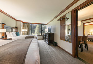 This is a Fireplace Suite with two bedrooms and 2 baths at the Everline Resort and Spa in Olympic Valley home to the world famous Palisades Tahoe ski area home of the 1960 Winter Olympics. This 4th floor unit offers wonderful views towards the ski area. The living area has the perfect ambiance to relax after a day's activities in the mountains. The Everline Resort offers direct access to a ski lift in the winter. Owners also have a dedicated locker within the resort for skis, etc. In addition to onsite dining and shopping. There is a year round heated pool and spa facilities. A golf course adjoins the resort. The second bedroom can be locked off and the two units rented separately.