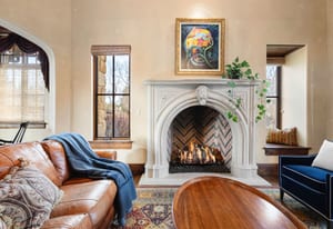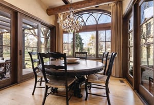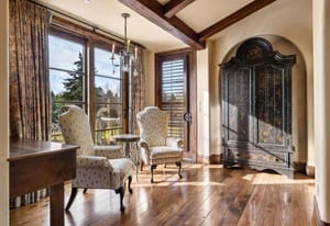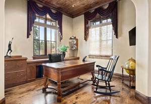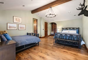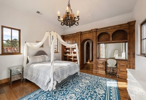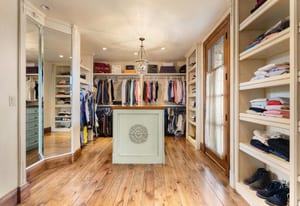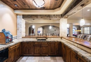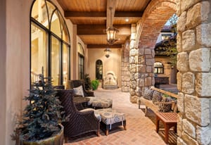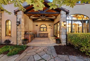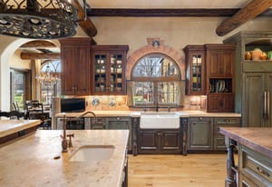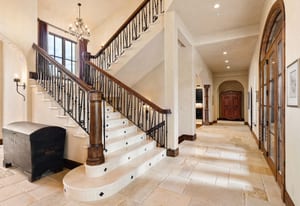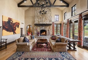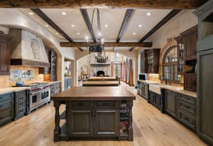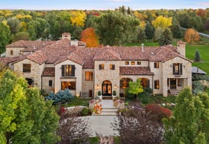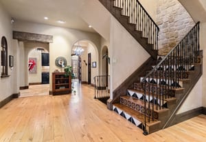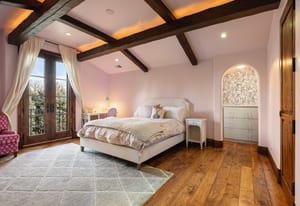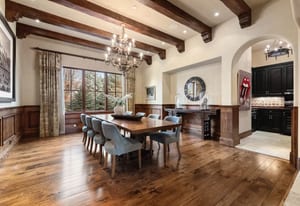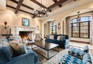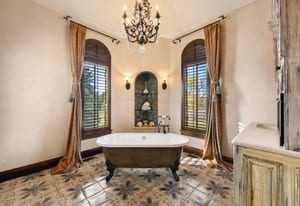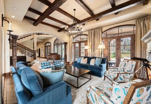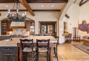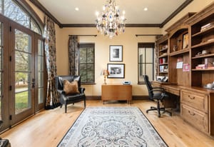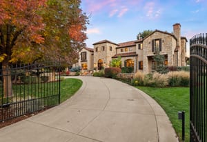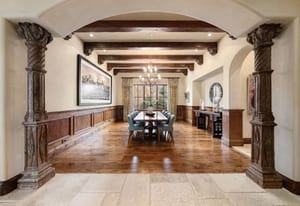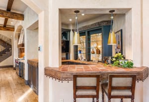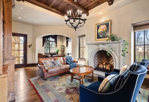 Behind wrought iron gates and a circular drive lies this exceptional estate set across nearly 2.5 professionally curated acres, offering privacy and convenience. A grand entry introduces the home’s architectural pedigree, where stone and reclaimed hardwood plank flooring set a warm, refined tone. Imported materials, custom millwork, architectural beams, and designer fixtures speak to a depth of quality felt at every turn. Dual staircases, exquisite doors, and thoughtful detailing create both presence and flow.