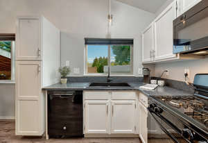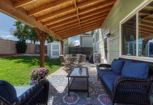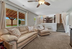 Welcome to this beautifully maintained and thoughtfully updated home, offering comfort, style, and functionality in one perfect package. Freshly painted inside and featuring updated bathrooms, this residence boasts a bright, open floor plan designed for modern living. The spacious living area centers around a wood-burning fireplace with a custom surround, creating a warm and inviting atmosphere. Step outside to your private backyard retreat—complete with a covered patio that extends your living space and provides the perfect setting for outdoor entertaining or quiet relaxation.