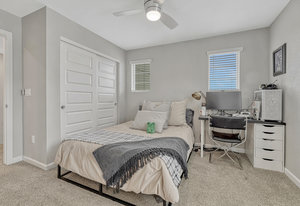 Welcome to Stylish, Low-Maintenance Living, Smart Home, in North Colorado Springs! Discover the perfect blend of comfort, convenience, and modern design. Located in a quiet, well-maintained community in a sought-after neighborhood with breathtaking mountain views. This home features include 3-bedrooms, 2.5-baths and a low-maintenance lifestyle with high-end finishes and easy access to the city’s top amenities. Step inside to an open-concept main level featuring luxury vinyl plank flooring, a bright living room with large windows, and a contemporary kitchen equipped with stainless steel appliances, a center island, and granite countertops. Upstairs, the spacious primary suite features a walk-in closet and an en-suite bath with dual vanities and a walk-in shower. Two additional bedrooms share a full bath and both have ample closet space. Upper area is complete with and loft desk area and a spacious laundry room. The two-car attached garage provides convenience and extra storage on this well situated end unit. Located in Academy School District 20 and just minutes from I-25. Walk to shopping, restaurants, and parks. This home offers an exceptional opportunity for buyers seeking style and simplicity in a growing community. Schedule your private tour today and experience the ease of modern Colorado living.