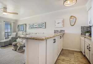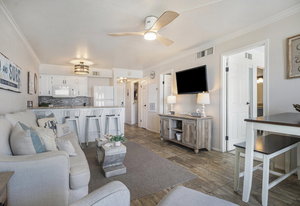 Beachfront Bliss at Babe’s Beach! Live your best island life in this gorgeous top-floor condo with front-row Gulf views from your private balcony overlooking the Gulf and iconic Seawall! Step inside to find beautiful laminate flooring, a kitchen featuring a full-size refrigerator with granite breakfast bar, and a spacious living and dining area perfect for relaxing or entertaining. The primary bedroom offers stunning Gulf views, so you can wake up to the sound of the waves. This condo comes fully furnished and move-in ready, ideal for a vacation rental or your own coastal retreat. Soak up the sun with 2 sparkling pools, 2 hot tubs, a fitness center, tennis court, BBQ and picnic areas. With Babe’s Beach just across the street, you will be steps from the sand and only minutes from Galveston’s best restaurants, shopping, Pleasure Pier, and entertainment. Walk to Walmart or stroll along the seawall — this one’s a must-see coastal gem!