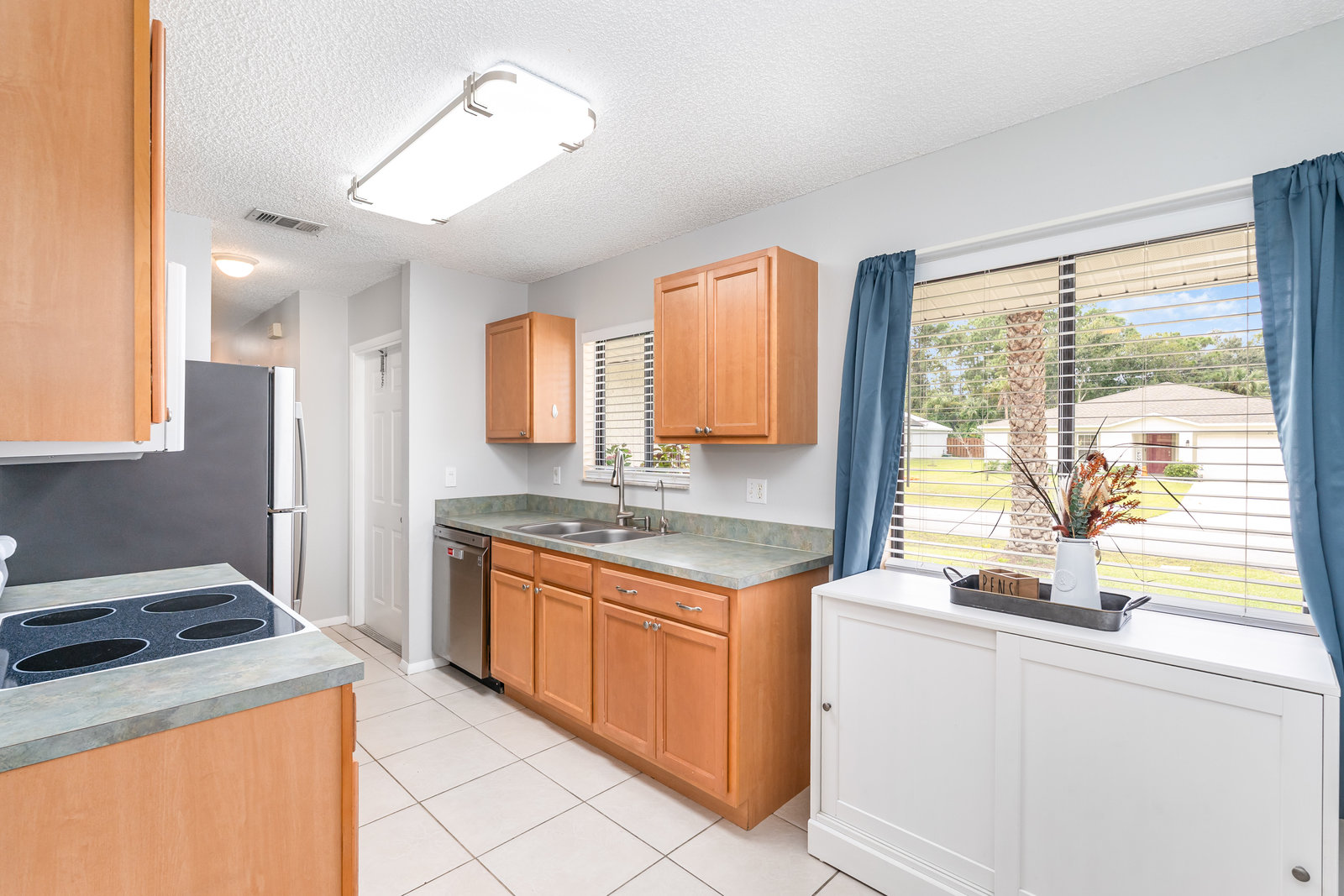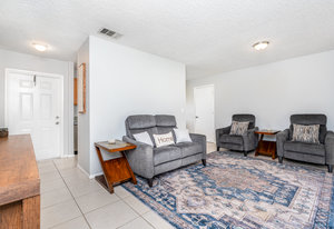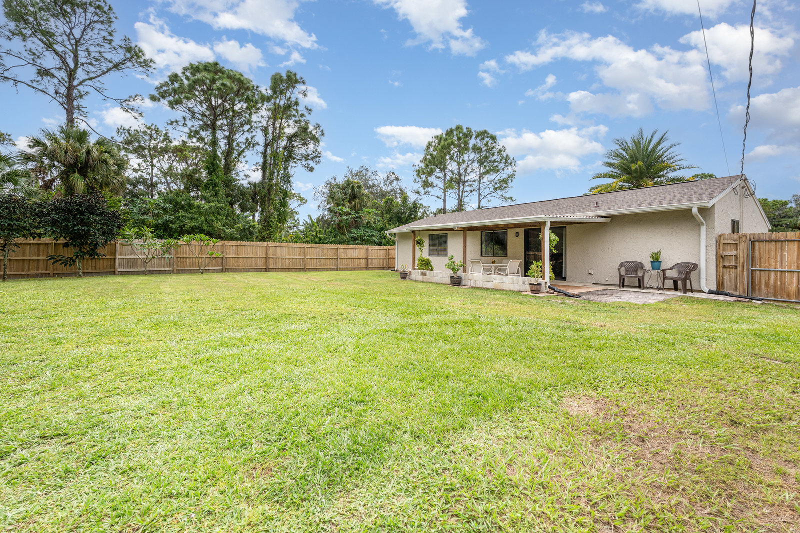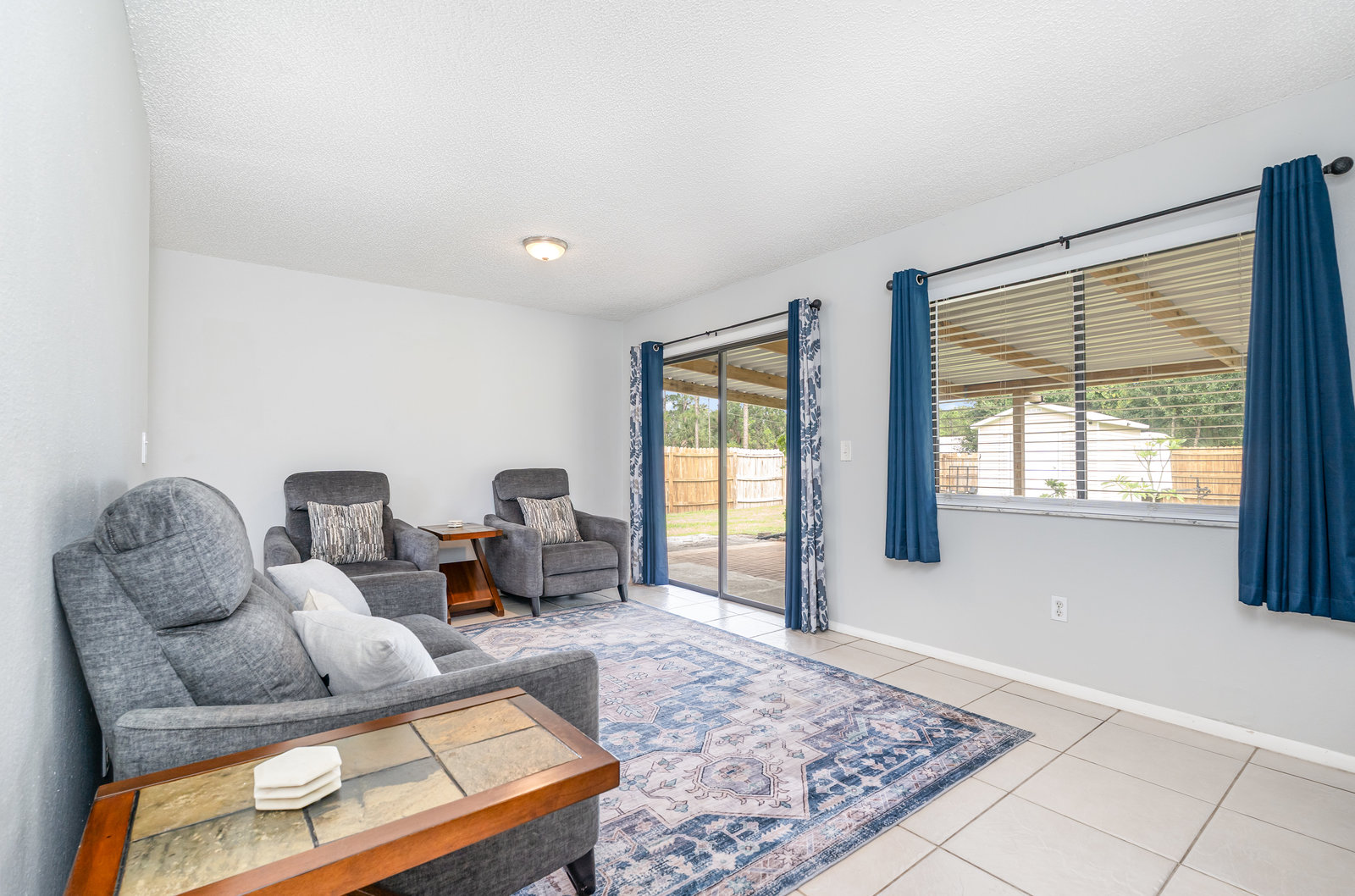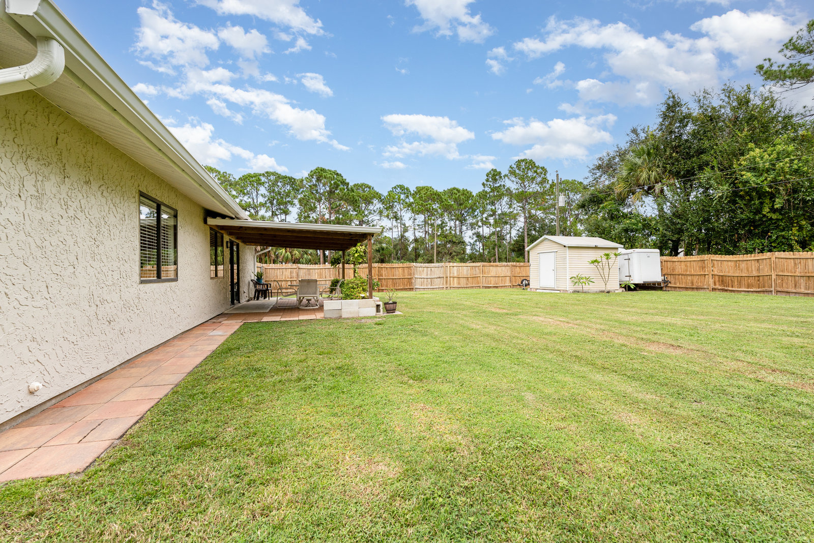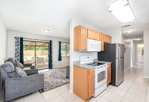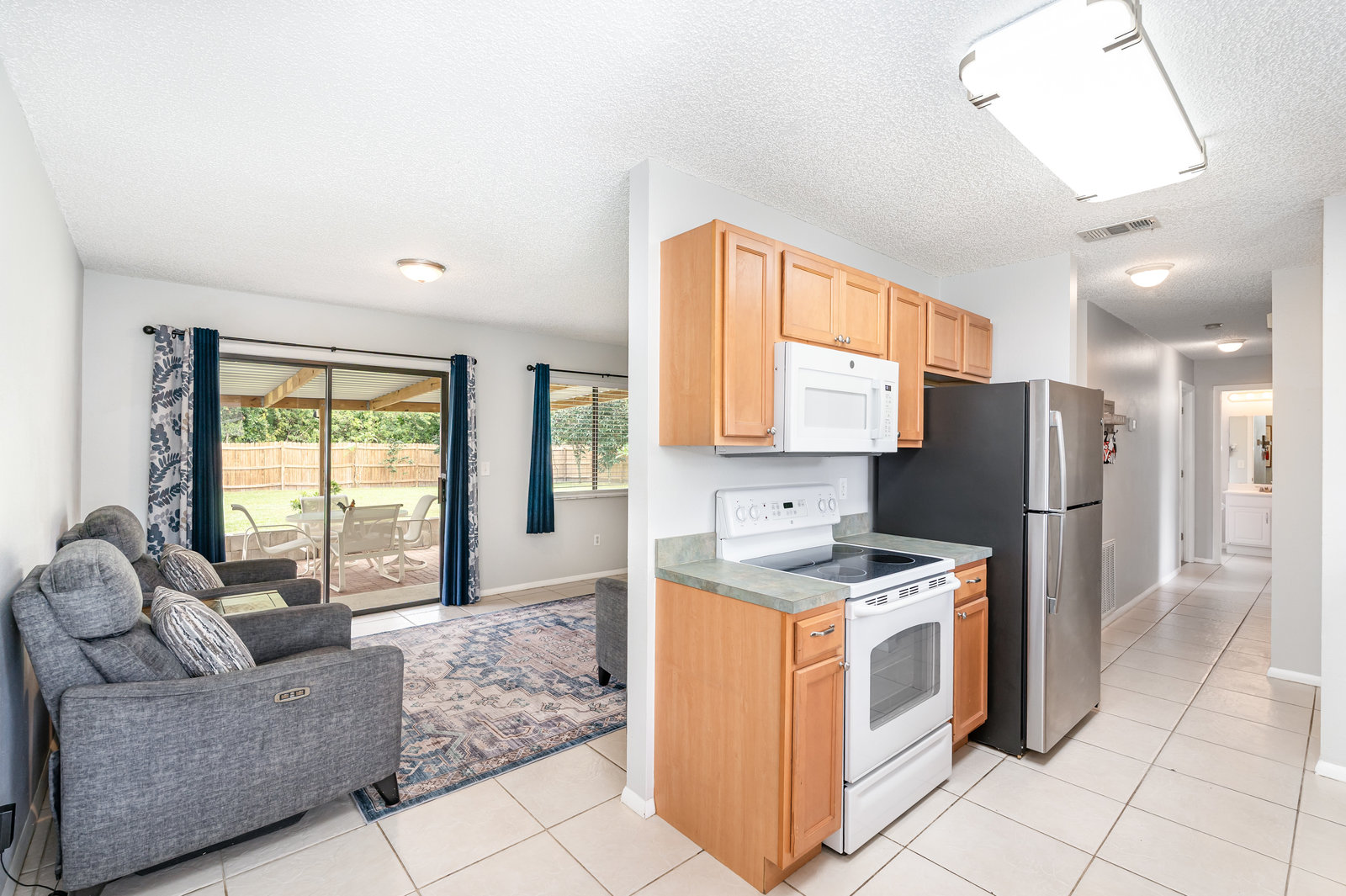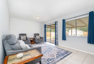 Beautiful and move in ready three-bedroom two bath home, New roof in 2024. Enter the front door and you will find tile thru out the main living areas and carpet in the bedrooms. The updated kitchen offers plenty of space for preparing your gourmet meals! The main bedroom features its own bath, and there is an additional hall bath for guests. The front yard welcomes you home with its tasteful landscaping. There is a large, covered roof area out back overlooking the huge fenced in back yard and shed. Plenty of privacy for all your outdoor activities. Come check out this lovely home. You will not be dissapointed.