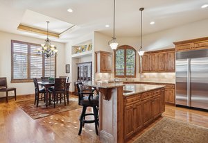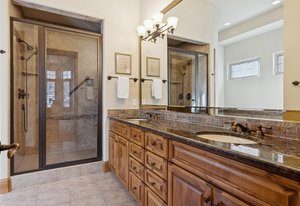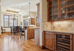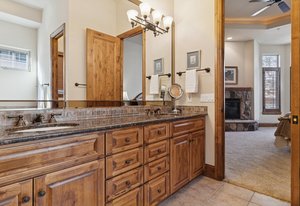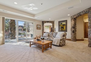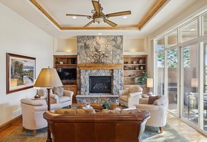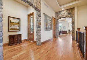 If you’re looking for a truly custom home that blends timeless design with comfortable, everyday livability, this 4 bedroom | 4 bathroom residence, designed by renowned architect Craig Bush and well-located on a corner lot within the gated, highly coveted Village at Castle Pines community, delivers. The main level, featuring rich hardwood floors and statement-making millwork, is thoughtfully designed around a dramatic open concept great room showcasing a stone fireplace, tray ceiling with wood accents, thoughtfully designed built-ins, and floor to ceiling windows | access door opening to a covered deck - creating seamless indoor | outdoor connectivity. Adjacent to the dining room, the kitchen is finished with warm wood cabinets, granite counters, and a generous center island. Appliances include Sub-Zero refrigerator and beverage fridge, Wolf double ovens, range, warming drawer, and built-in microwave. A sizable main level office with coffered ceiling detail and handcrafted built-ins provides a quiet retreat, while the primary suite offers a spacious escape filled with abundant natural light. The adjoining bathroom is appointed with dual vanities, granite counters, and custom cabinets. Completing this level are a well-planned laundry room, refined powder room, and 2-car garage with epoxy seal floor and built-in storage. Expanding the home’s versatility, the walkout lower level includes a large family room with walkout access to the covered deck. Three more bedrooms are thoughtfully offered, with two sharing a well-appointed bathroom, and the third featuring an en suite bath. A flexible bonus room with abundant natural light provides space for a 2nd home office, fitness studio, or playroom. Additional ample unfinished space is perfect for storage or future expansion. Designed for both everyday comfort and entertaining, this thoughtfully built home offers a functional layout, high quality finishes, and a rare balance of privacy, warmth, and convenience.