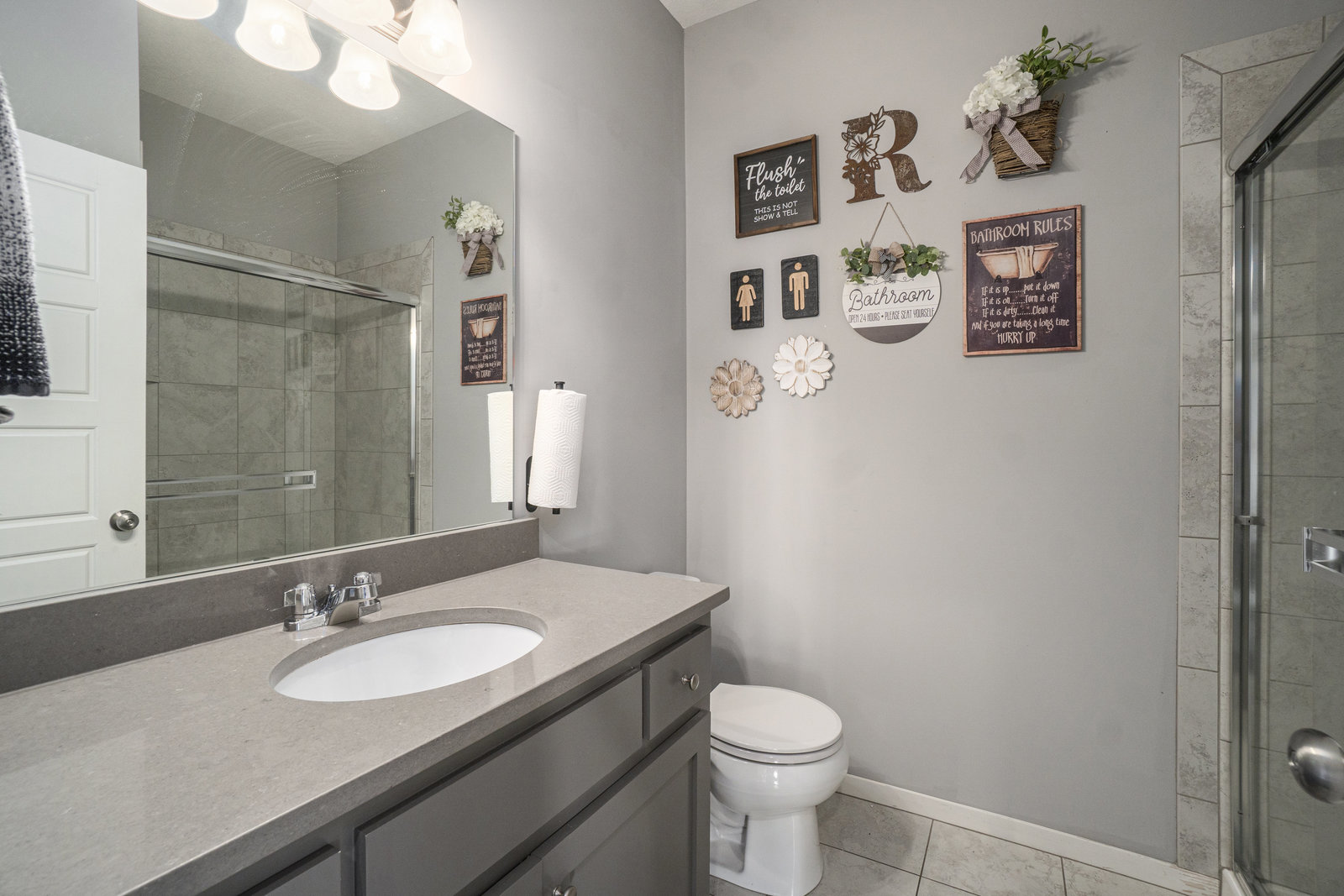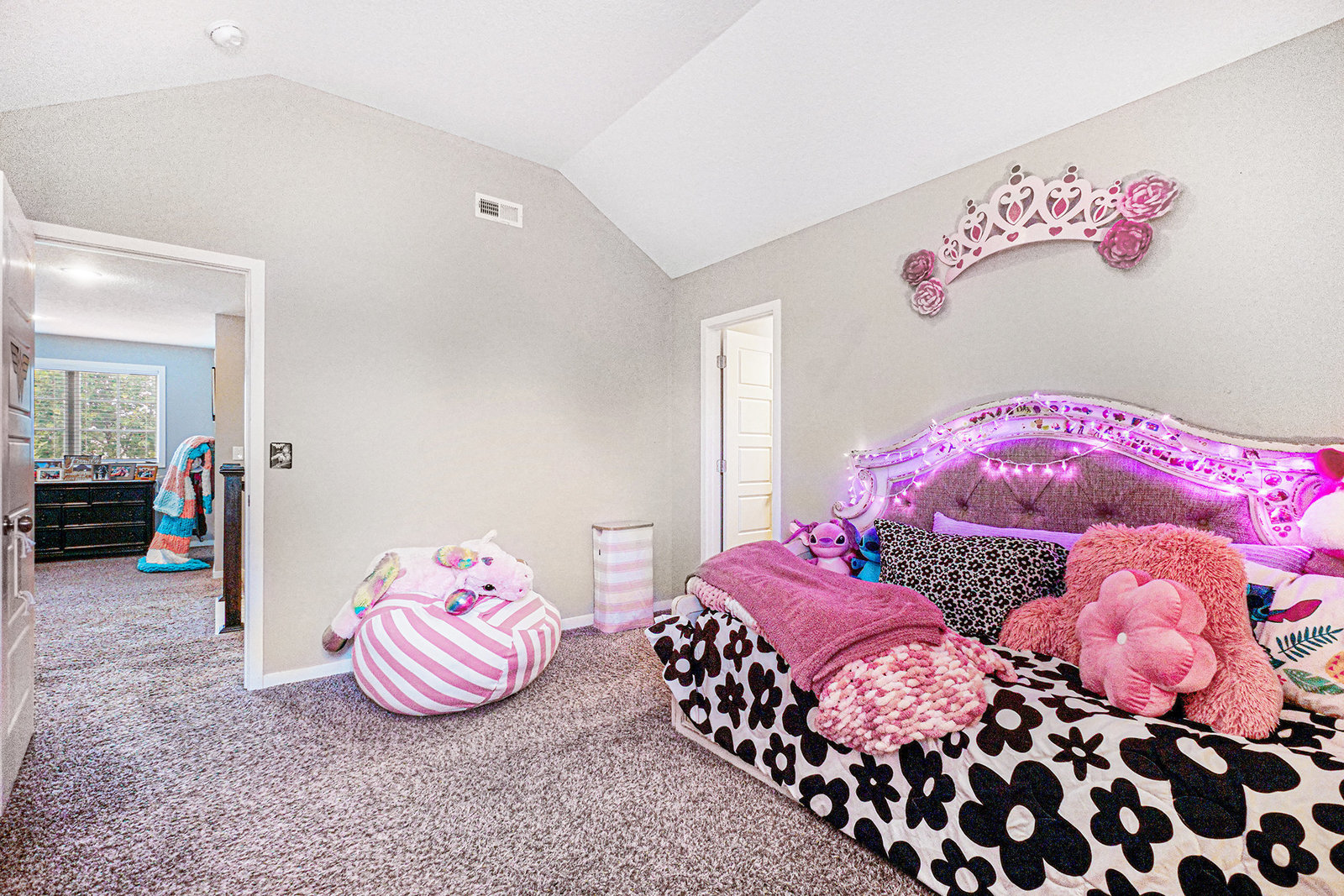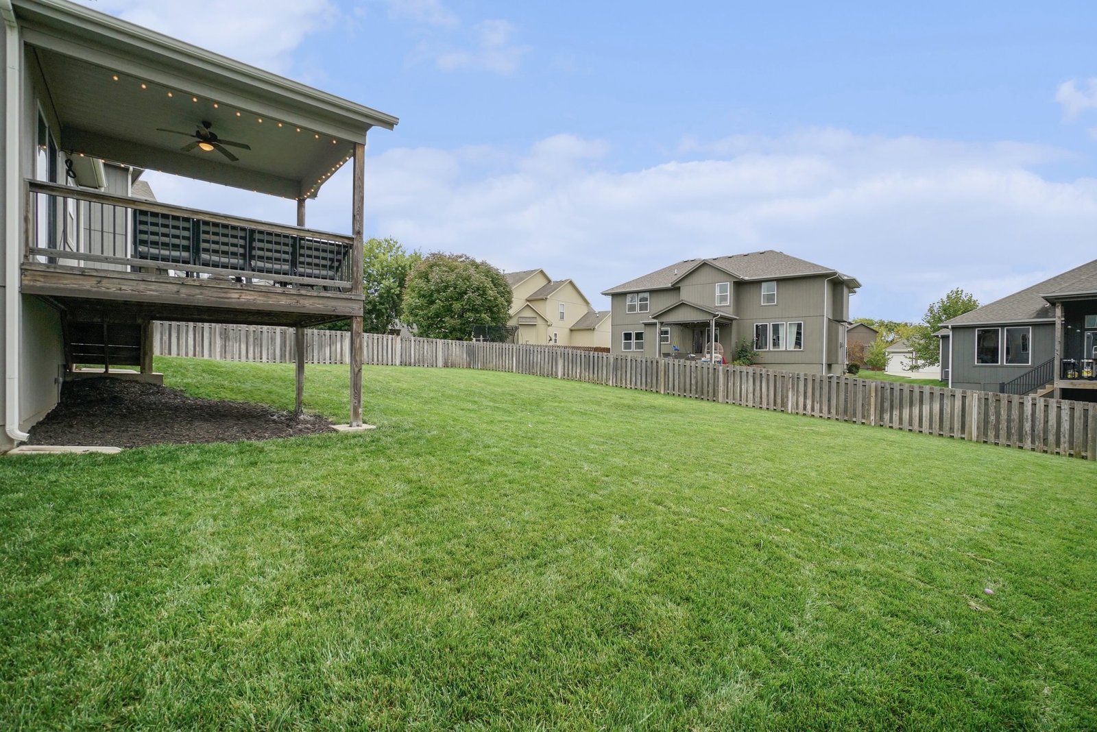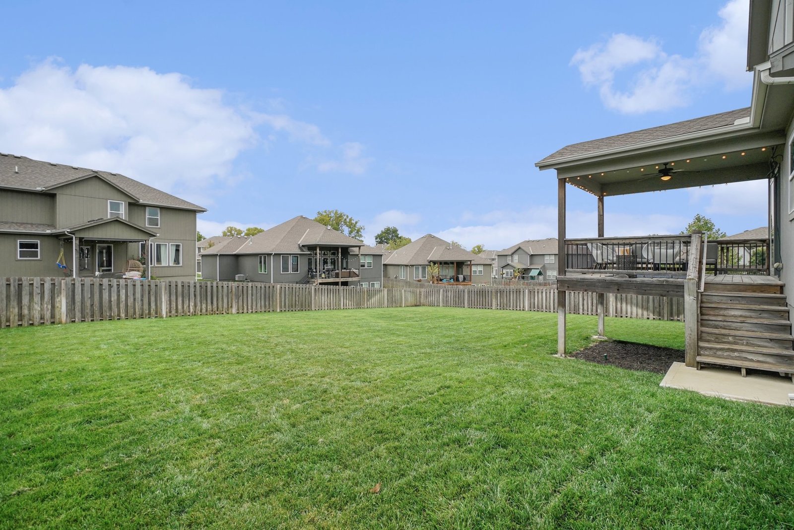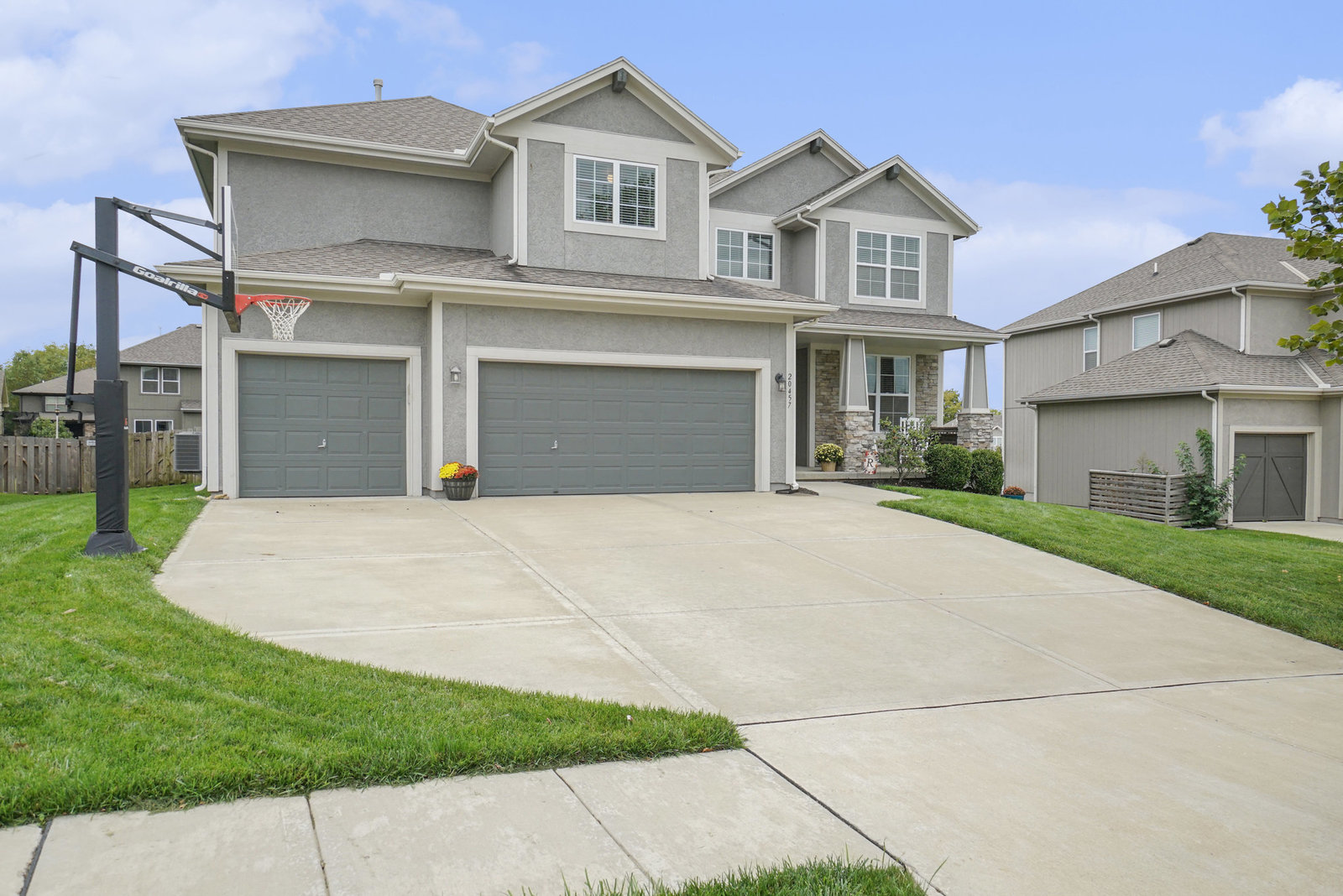 Welcome guests from the front covered porch and bring everyone together in the open-concept main level, where the expanded kitchen with a walk-in pantry becomes the heart of every celebration. This charming 2-story home includes a bedroom with a full bath on the main level— ideal for a home office or visiting in-laws. Upstairs, each of the 4 bedrooms features a walk-in closet and en-suite bath access- allowing privacy for everyone. If an XL closet is on your list, you will love the primary closet with attached laundry room complete with folding counter, washer and dryer included! The finished daylight lower level invites fun and relaxation with a dry bar, beverage fridge, recreation space, 5th full bath. Step outside to the lush, fully fenced backyard, where dual gates and a covered deck offers the perfect setting for morning coffee or a stunning sunset. Paint touch-ups and professionally cleaning complete for you to move right in!