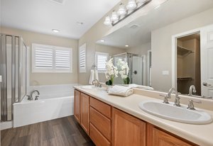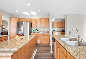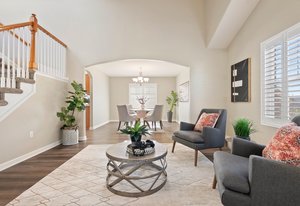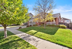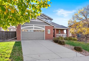 Spacious, updated, and move-in ready—this 4-bedroom home in The Conservatory offers over 3,400 total square feet, a rare full basement, and a long list of thoughtful upgrades. Set on a quiet street with a welcoming brick exterior and charming covered front porch, the home makes a strong first impression. Inside, vaulted ceilings in the living room add to the sense of space and natural light throughout. The main level includes a formal living room, separate dining area, and a large family room with gas fireplace—all flowing effortlessly into the heart of the home: a well-appointed kitchen with two islands, stainless steel appliances, and abundant cabinetry and countertop space. Luxury vinyl plank flooring runs throughout the entire main level and all bathrooms, complemented by custom plantation shutters on every window and brand-new carpet upstairs. Upstairs, you’ll find four vaulted bedrooms, including a spacious primary suite with a 5-piece bath, double vanity with great counter space, and a walk-in closet. The secondary bedrooms share a full hall bath, and some enjoy west-facing mountain views. The nearly 1,200 sq ft full unfinished basement offers excellent potential for storage, recreation, or future expansion—ideal for adding a 5th bedroom and 4th bath if desired. Additional updates include a new roof (2021) and brand-new A/C unit (2023). The Conservatory is a vibrant and desirable community featuring a neighborhood pool, clubhouse, scenic trails, parks, playgrounds, and year-round events. With its flexible layout, quality finishes, and rare full basement, this spacious home offers value, versatility, and a lifestyle you’ll love. Just in time to host the holidays, this move-in ready home is waiting to welcome its next chapter.
