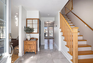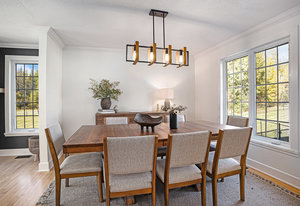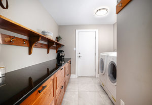 A well-designed mudroom off the garage provides practical storage and organization, complete with built-in laundry facilities, making daily routines more convenient. The kitchen and dining areas are thoughtfully positioned to promote social interaction, with large patio doors opening onto the backyard, seamlessly connecting indoor living with outdoor entertaining spaces.