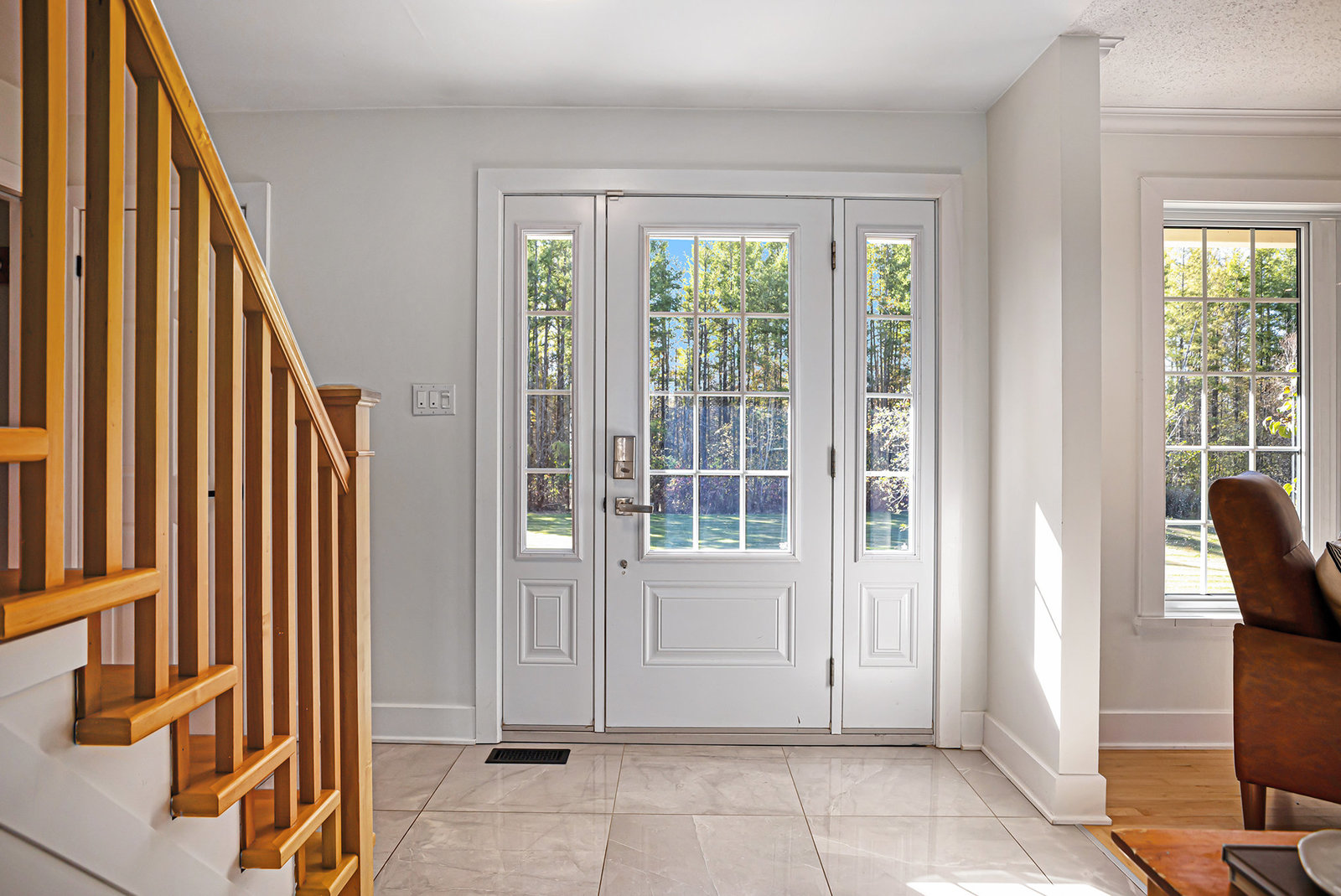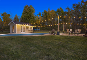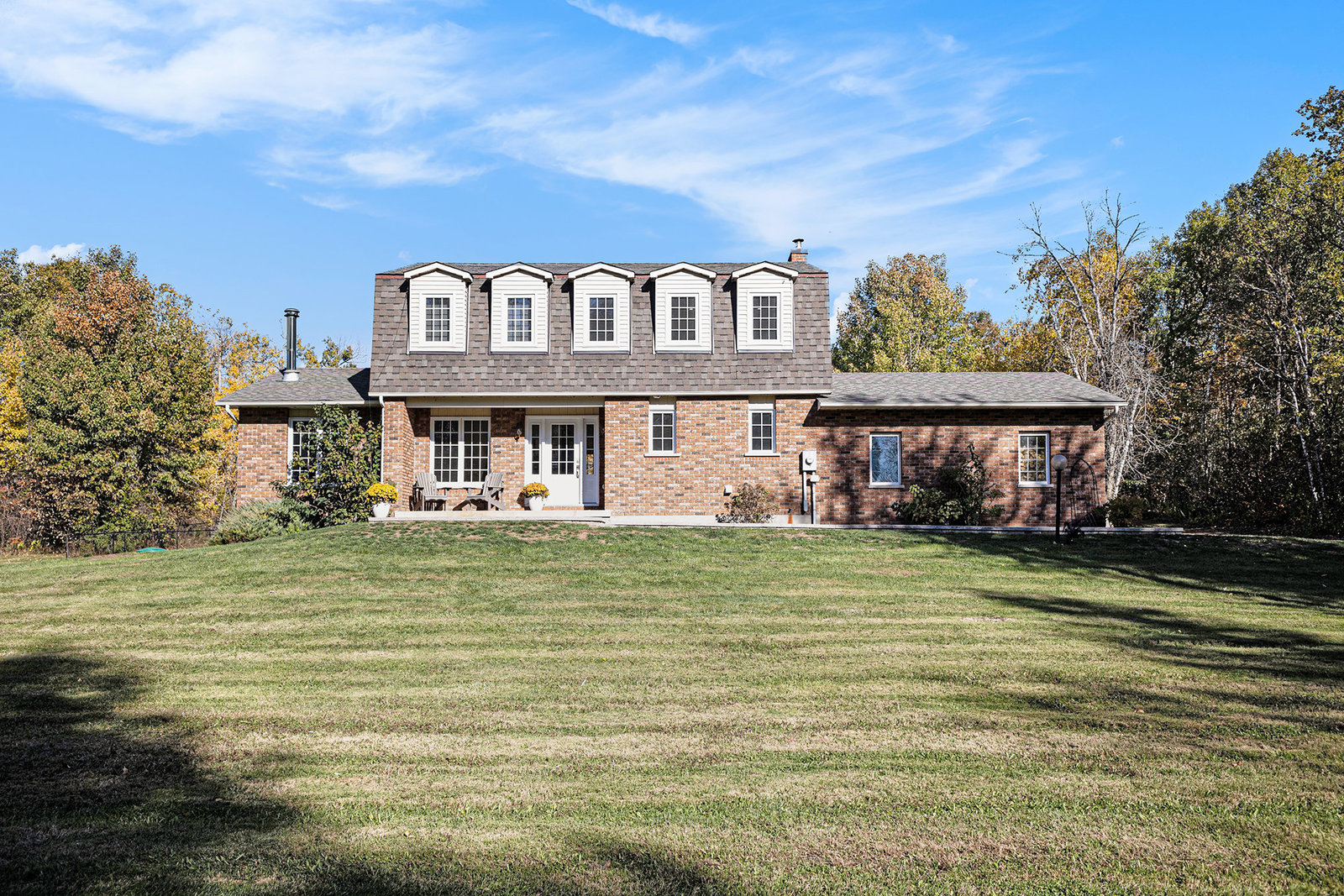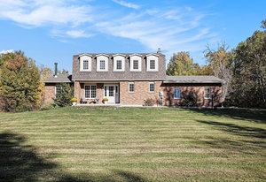 The centerpiece of the property is a custom-built, contemporary family home originally constructed in 1985, offering approximately 2,200 square feet of thoughtfully designed living space above grade. The home’s exterior features classic brickwork complemented by a charming covered front entry, adding timeless curb appeal. The front porch provides a welcoming spot to enjoy the tranquil surroundings.