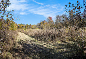 For horse enthusiasts, the property features a spacious 31 x 21-foot barn with two stables, all serviced by water and electricity—ideal for boarding and caring for horses or other livestock. The land is dotted with mature trees, providing shade and privacy, while well-maintained walking trails invite exploration and outdoor recreation.