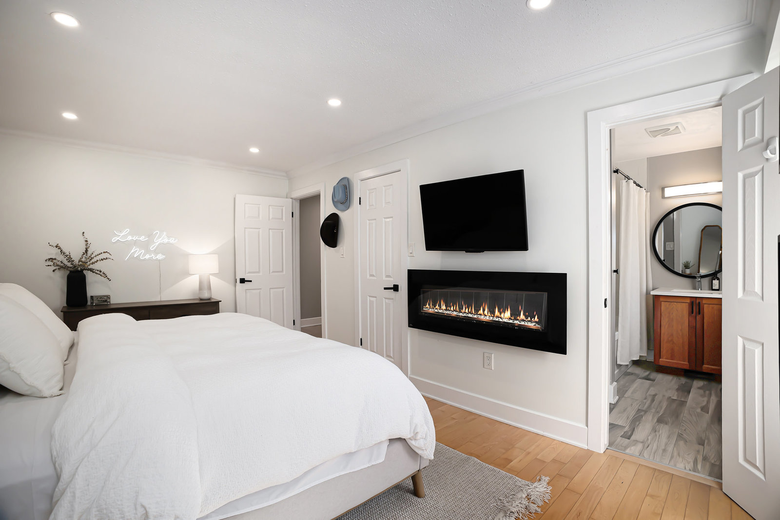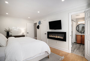 Upstairs, the home offers four spacious bedrooms, including a luxurious primary suite. The primary bedroom features a generous walk-in closet and an ensuite bathroom with heated floors, providing a private sanctuary. Two additional full bathrooms and a powder room serve the remaining bedrooms and guests, ensuring ample facilities for family and visitors.