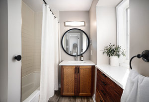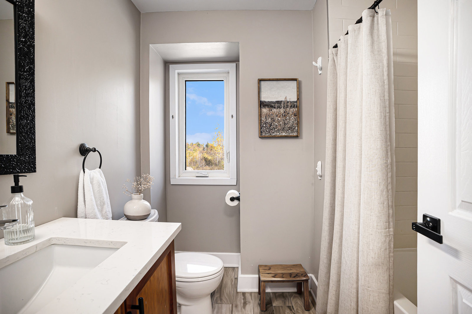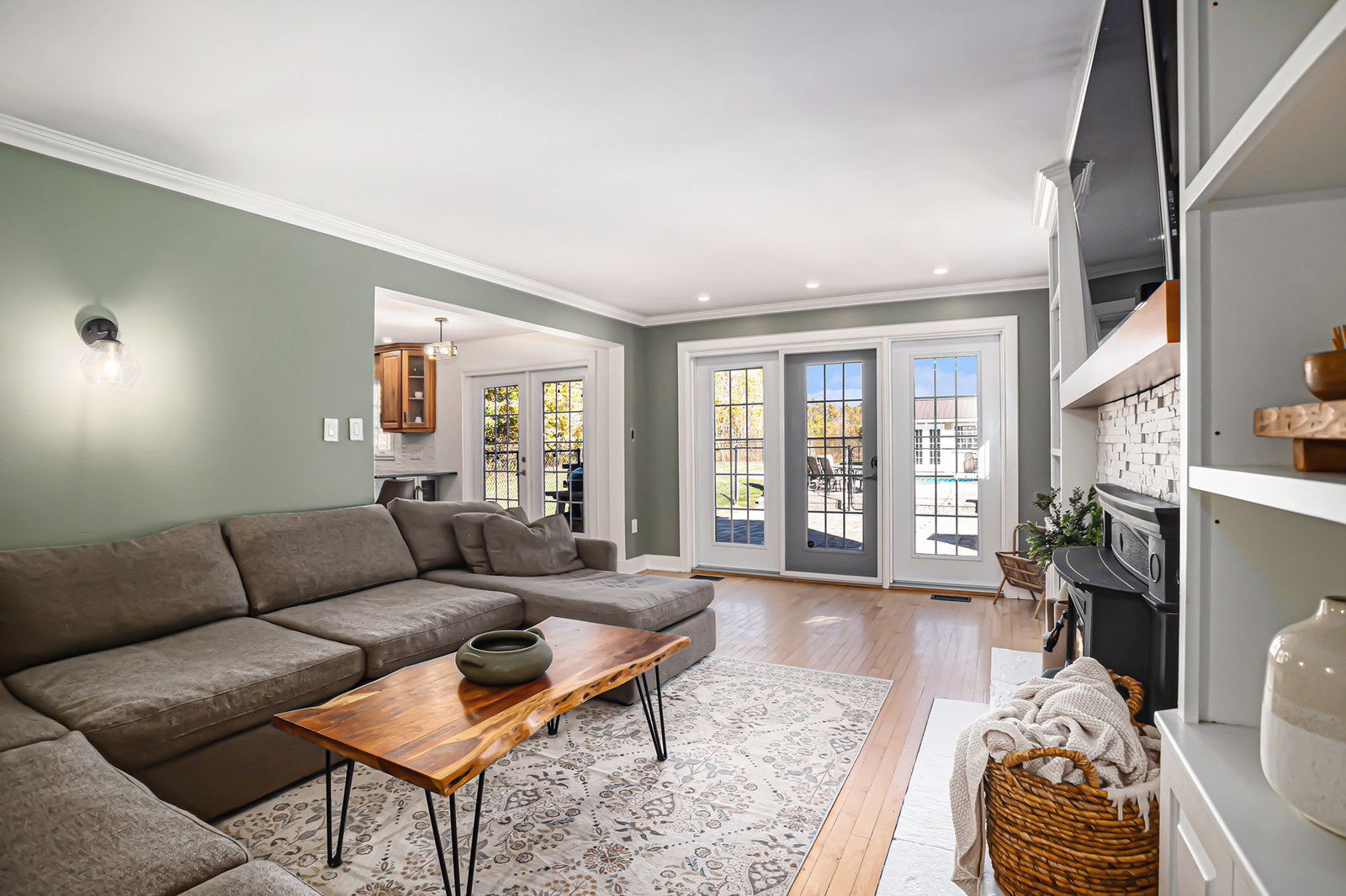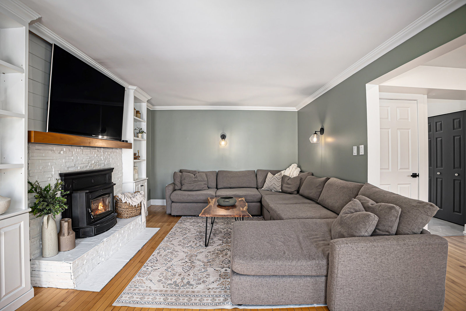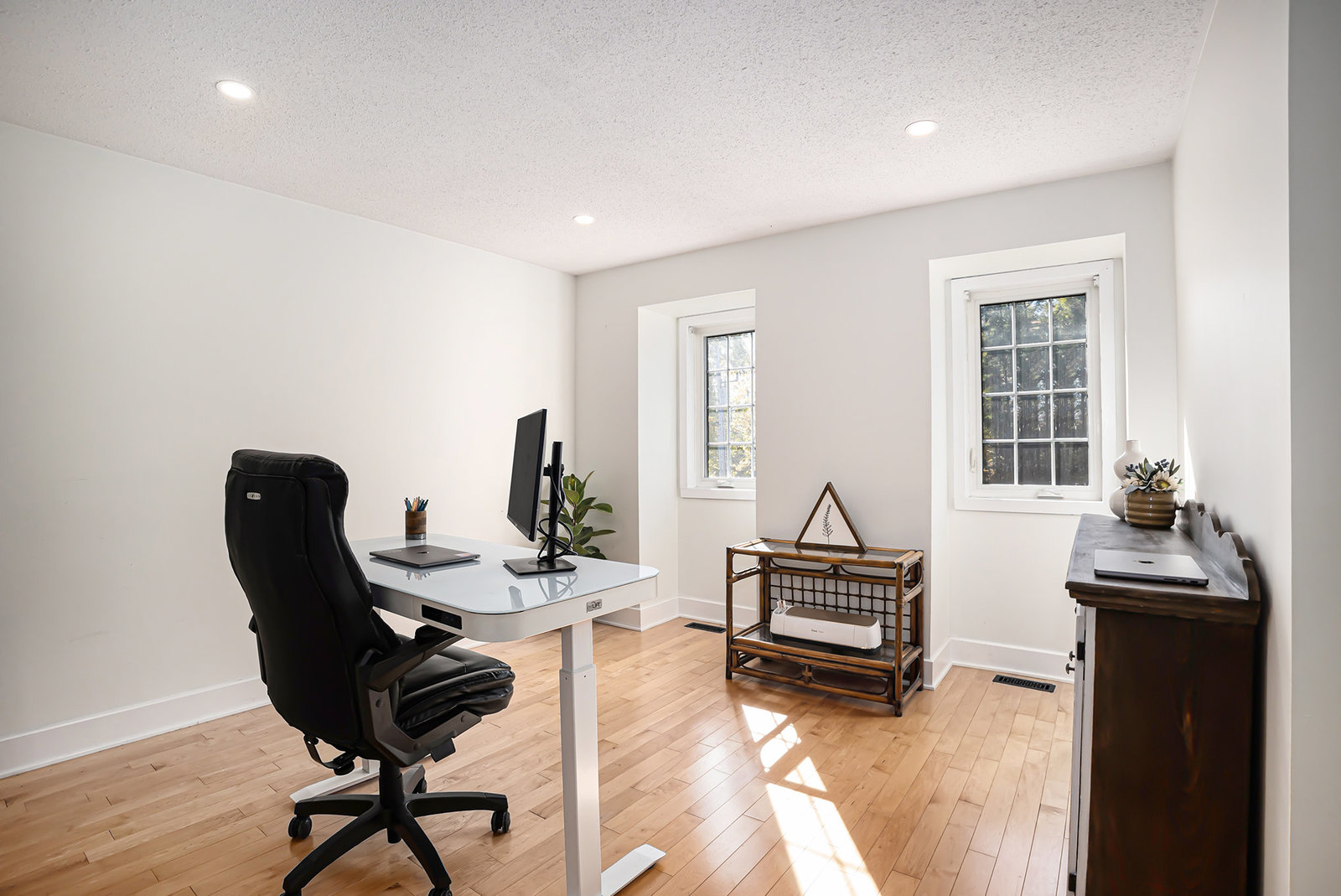 The finished basement adds valuable living space, featuring a large recreational room with durable vinyl plank flooring—an excellent spot for game nights, movie evenings, or a kids’ play area. The basement’s versatile layout accommodates a range of family activities and hobbies.