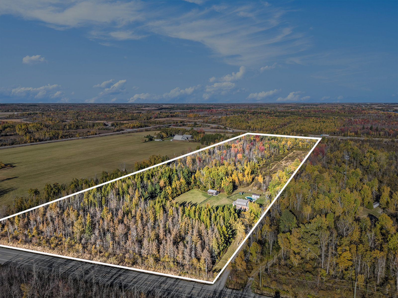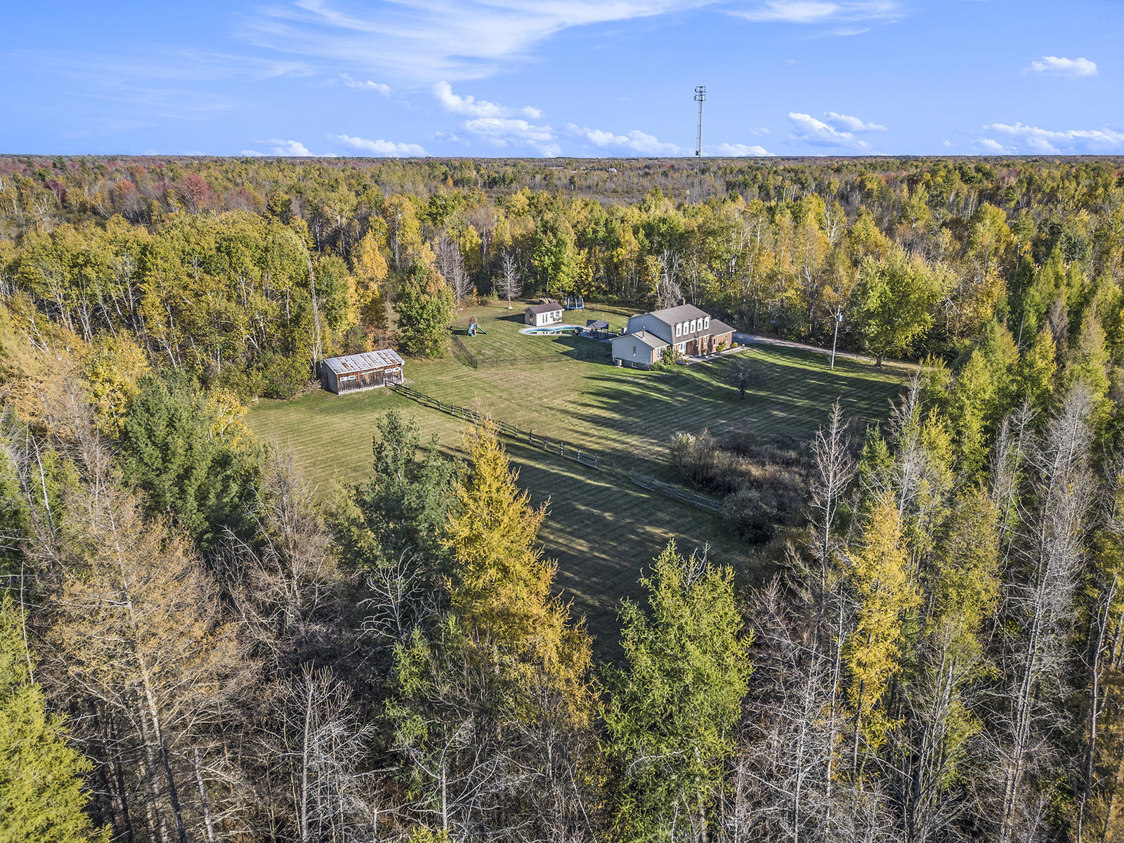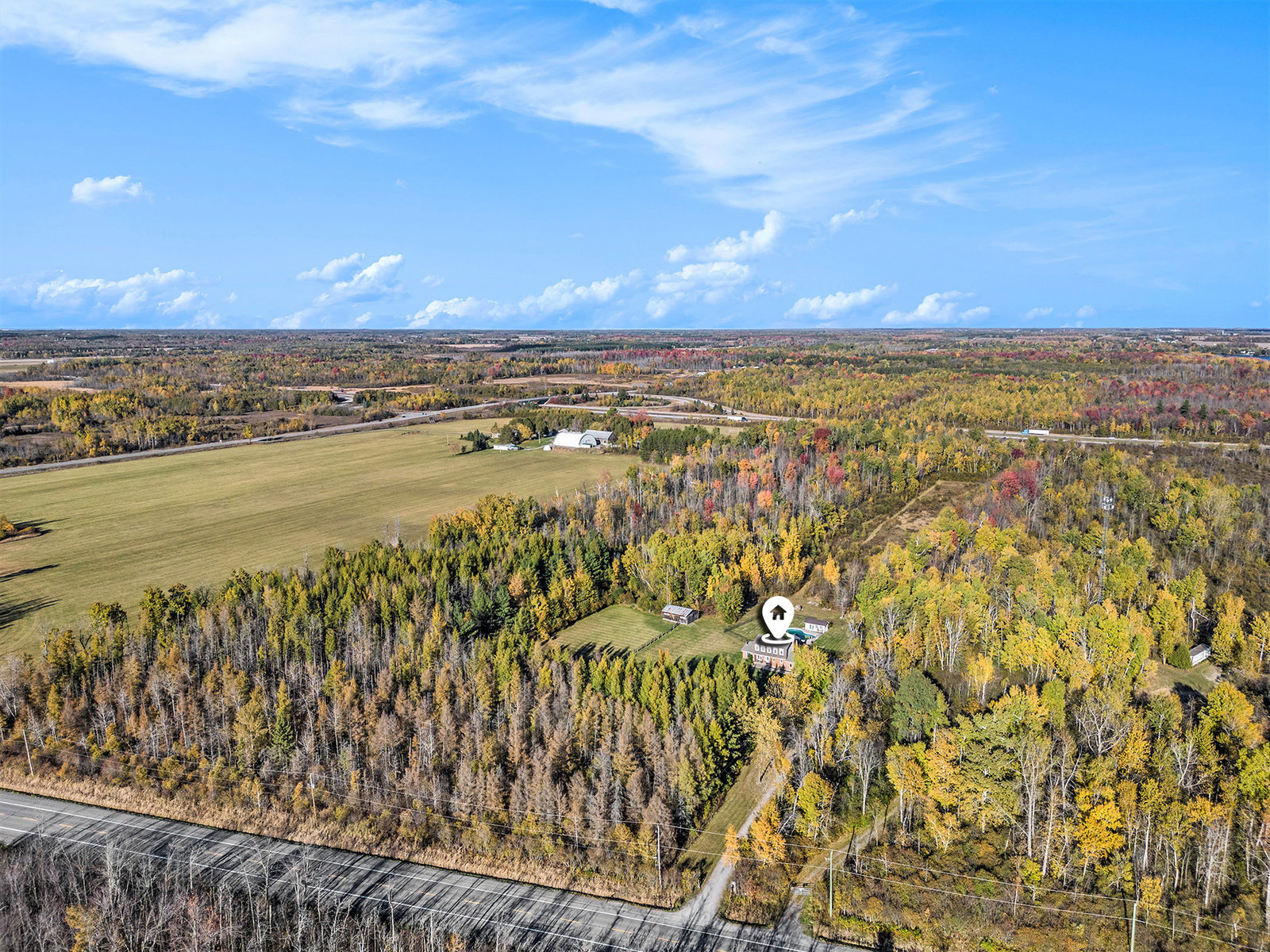 Welcome to 7521 Fourth Line Road, a stunning hobby farm set on an expansive 34.5-acre private property that offers a harmonious blend of outdoor natural beauty and modern comfort. This meticulously maintained estate provides an exceptional opportunity for those seeking a peaceful country retreat with ample space for leisure, equestrian pursuits, and family living.