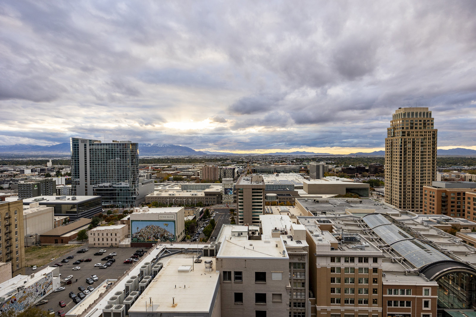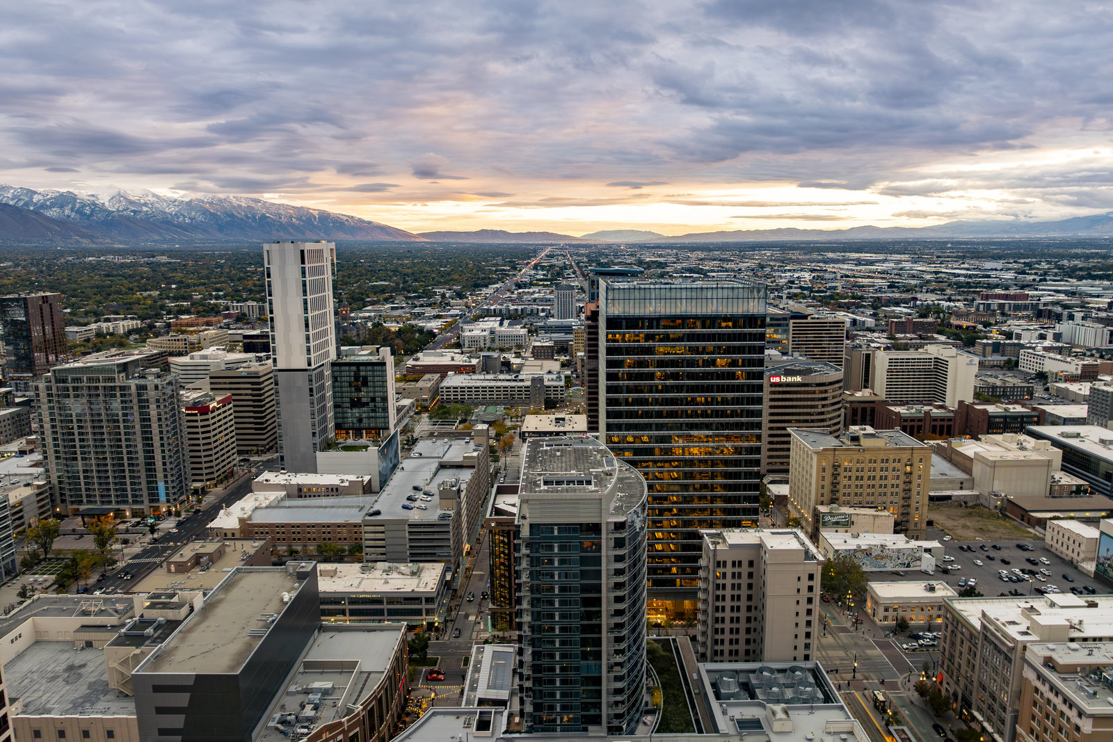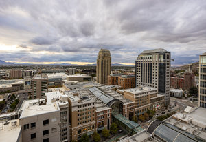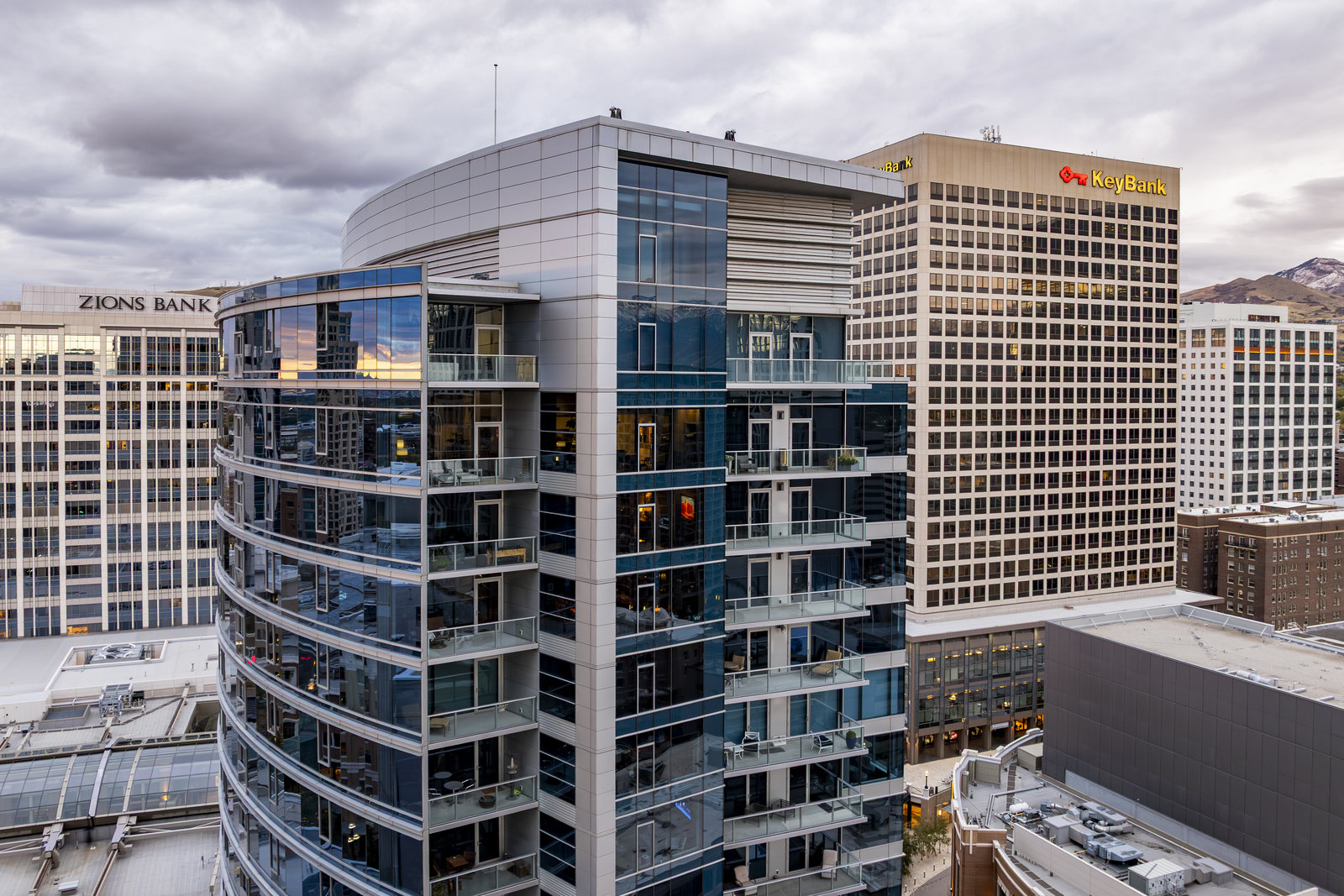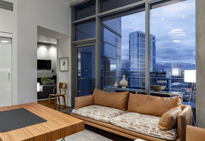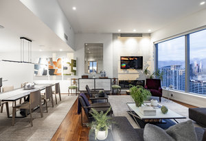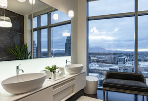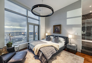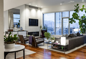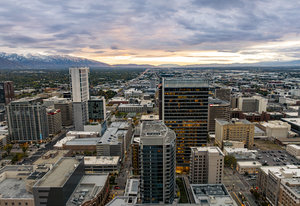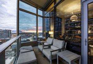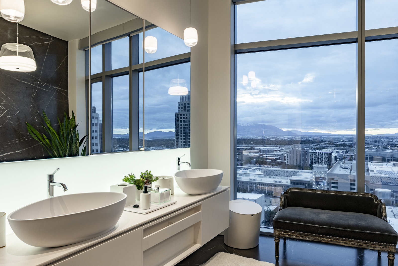 Perched high above the heart of downtown Salt Lake City, Penthouse 1905 at The Regent represents the pinnacle of contemporary urban living. This extraordinary residence was thoughtfully expanded during construction to combine the best elements of two units, resulting in a remarkable open layout and volume rarely found in the building. Soaring ceilings in the great room, den, and primary suite frame breathtaking views of the city skyline, the Wasatch Range, and the luminous western sunsets. Walls of glass invite natural light throughout the day, while an expansive balcony provides a seamless connection to the outdoors. The primary suite is a true retreat, featuring a built-in coffee bar, exceptional walk-in closet organization, and a spa-inspired bath with a freestanding soaking tub and a steam shower designed as an art piece itself, encased in curved glass with multiple shower heads and a stone bench beneath a cascade of body jets. A private den with custom metal shelving opens to the balcony, offering both inspiration and serenity. The great room combines formal dining and a generous living area anchored by a sleek contemporary fireplace. The kitchen blends clean, modern lines with luxury finishes including flat-front white cabinetry, stunning marble countertops, an appliance garage, Gaggenau appliances, and a sculptural island for dining or gathering. Additional highlights include Lutron lighting, radiant floors, Toto fixtures, exquisite wallpaper and millwork, and generous storage both in the unit and within the building. The Regent’s amenities, an indoor pool, fitness center, and secured parking, complement a lifestyle of ease and sophistication. Steps from the Eccles Theater, City Creek Center, the city's top dining and the Delta Center, this penthouse offers a rare combination of luxury, privacy, and connection to the vibrant pulse of downtown Salt Lake City.