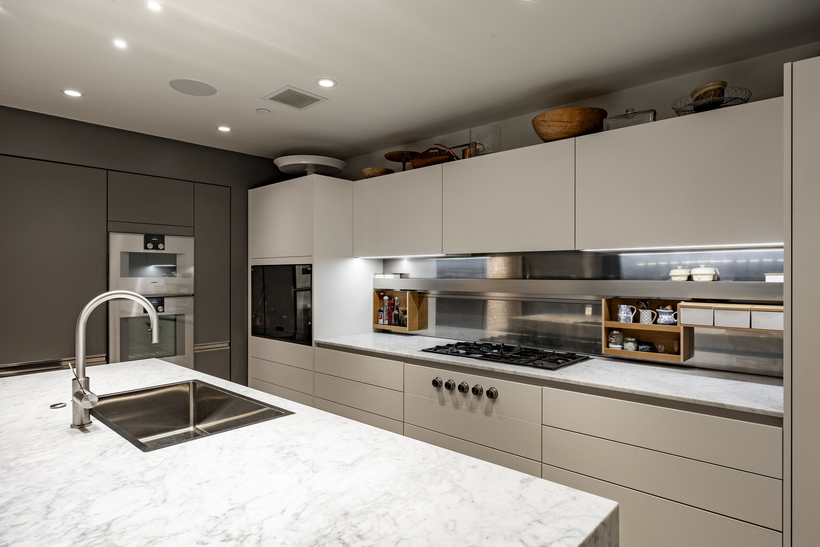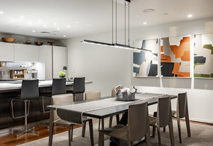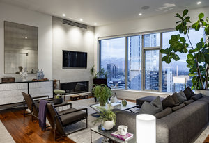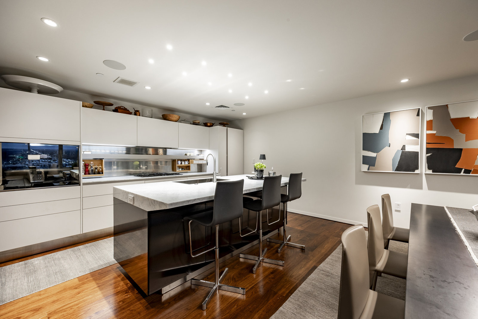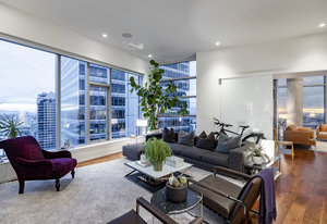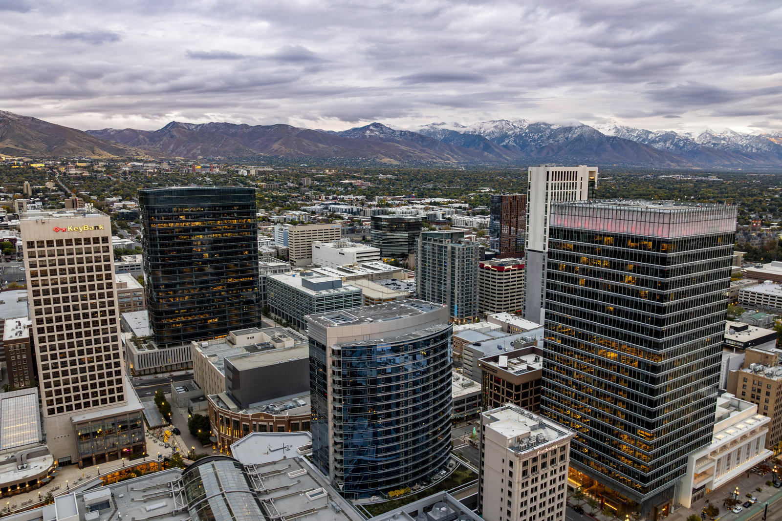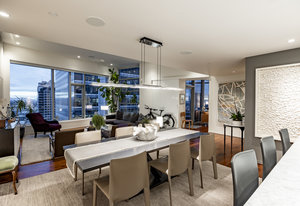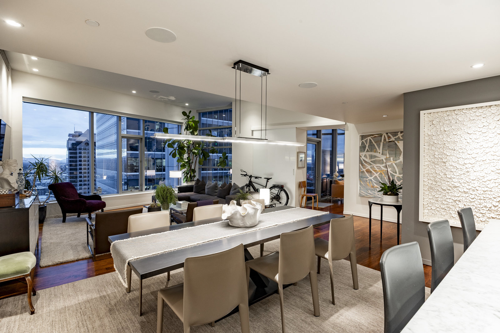 Perched high above the heart of downtown Salt Lake City, Penthouse 1905 at The Regent represents the pinnacle of contemporary urban living. This extraordinary residence was thoughtfully expanded during construction to combine the best elements of two units, resulting in a remarkable open layout and volume rarely found in the building. Soaring ceilings in the great room, den, and primary suite frame breathtaking views of the city skyline, the Wasatch Range, and the luminous western sunsets. Walls of glass invite natural light throughout the day, while an expansive balcony provides a seamless connection to the outdoors. The primary suite is a true retreat, featuring a built-in coffee bar, exceptional walk-in closet organization, and a spa-inspired bath with a freestanding soaking tub and a steam shower designed as an art piece itself, encased in curved glass with multiple shower heads and a stone bench beneath a cascade of body jets. A private den with custom metal shelving opens to the balcony, offering both inspiration and serenity. The great room combines formal dining and a generous living area anchored by a sleek contemporary fireplace. The kitchen blends clean, modern lines with luxury finishes including flat-front white cabinetry, stunning marble countertops, an appliance garage, Gaggenau appliances, and a sculptural island for dining or gathering. Additional highlights include Lutron lighting, radiant floors, Toto fixtures, exquisite wallpaper and millwork, and generous storage both in the unit and within the building. The Regent’s amenities, an indoor pool, fitness center, and secured parking, complement a lifestyle of ease and sophistication. Steps from the Eccles Theater, City Creek Center, the city's top dining and the Delta Center, this penthouse offers a rare combination of luxury, privacy, and connection to the vibrant pulse of downtown Salt Lake City.