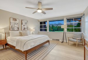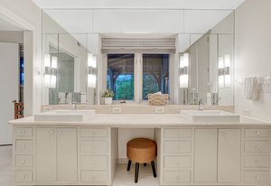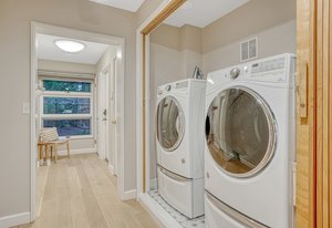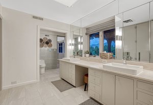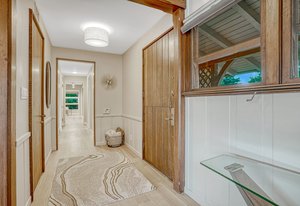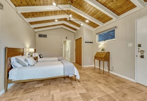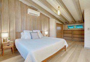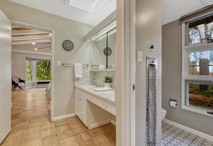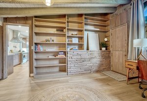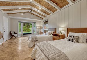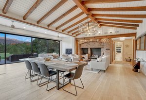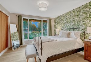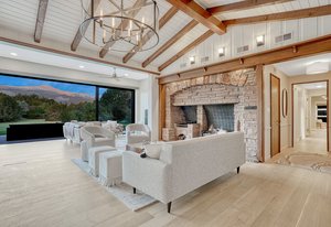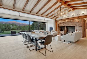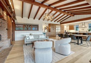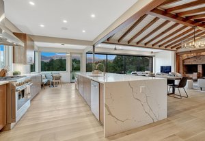 Designed for both entertaining and everyday living, the expansive ranch layout features open-concept living and dining spaces anchored by a gourmet kitchen with a dramatic 28-foot by 9-foot NanaWall sliding glass wall that seamlessly connects indoor and outdoor living. Quarter-sawn wide-plank white oak hardwood floors, quartz countertops, and preserved architectural details create a refined yet relaxed aesthetic that feels timeless rather than trendy.