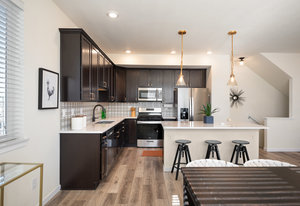Gorgeous end-unit townhome filled with natural light and modern style! Recently renovated with great mountain views. This 3 bed, 2.5 bath townhome lives large with 3 floors to spread out. The main living floor features an airy and open floor plan with seamless flow between the kitchen, dining and living areas with great mountain views! Along with the oversized deck - this is the perfect home to relax or entertain in. Upstairs you will find the luxurious primary suite with a walk-in closet and private bath that is flooded with natural light. You will also find an additional ensuite bedroom and laundry on the upper level. The ground level features a third bedroom, additional private patio and entry into your 2-car attached garage for ease and extra storage. Ideally located near the light rail, shops and dining, this home combines comfort, convenience and contemporary Colorado living at this best!