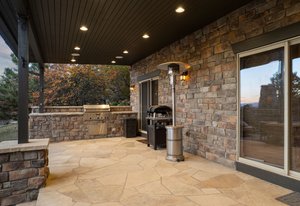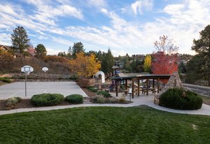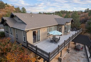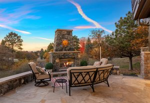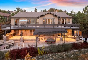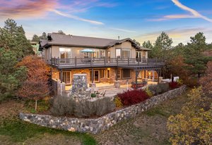 Experience elevated Colorado living outdoors on the covered flagstone patio, complete with built-in gas grill, outdoor gas fireplace, dry sauna, and hot tub, all surrounded by mature native landscaping that enhances both privacy and natural beauty.